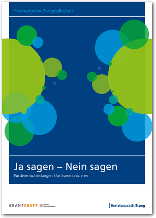 Bertelsmann Stiftung (Hrsg.) (PDF), 2015 Ja sagen - Nein sagen Antragsteller verbinden mit Förderanträgen hohe Erwartungen. Das Kommunizieren einer Förderentscheidung erfordert deshalb Nachvollziehbarkeit und Fingerspitzengefühl. Auch eine gut begründete Absage kann dabei durchaus ein konstruktiver Beitrag zum Verhältnis zwischen...