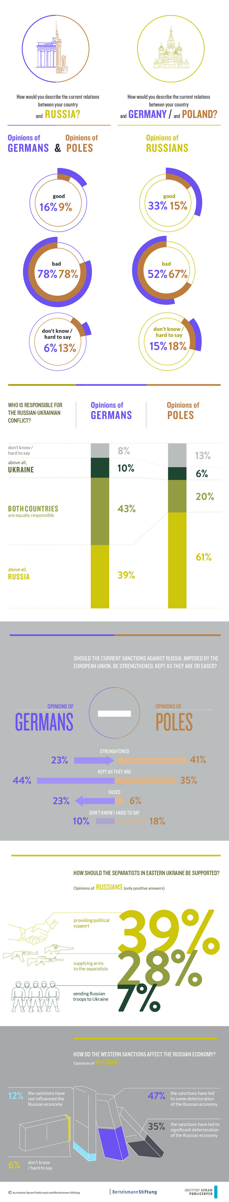 Deutsche und Polen erwarten von ihren Regierungen und dem jeweils anderen Land, gegenüber Russland Kurs zu halten. Das zeigt unsere Umfrage von 15.4.2015. Die Infografik fasst zentrale Ergebnisse kompakt zusammen (in Englisch).