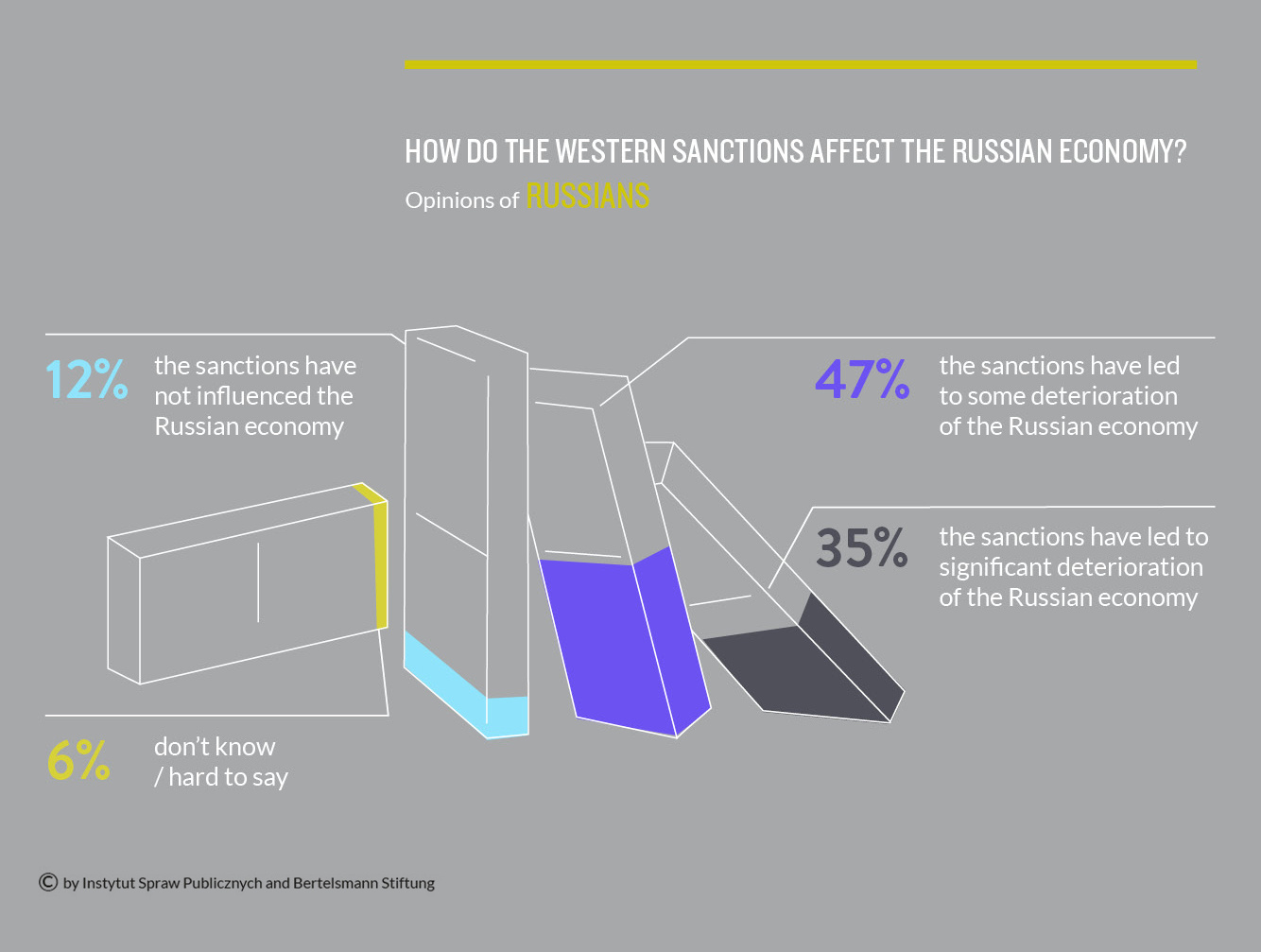 Auch zu den Sanktionen gegen Russland stehen Deutsche und Polen unterschiedlich. Während in Deutschland die Meinung überwiegt, die Sanktionen sollten in der bisherigen Form beibehalten werden, befürwortet eine relative Mehrheit der Polen, die Sanktionen weiter zu verschärfen.