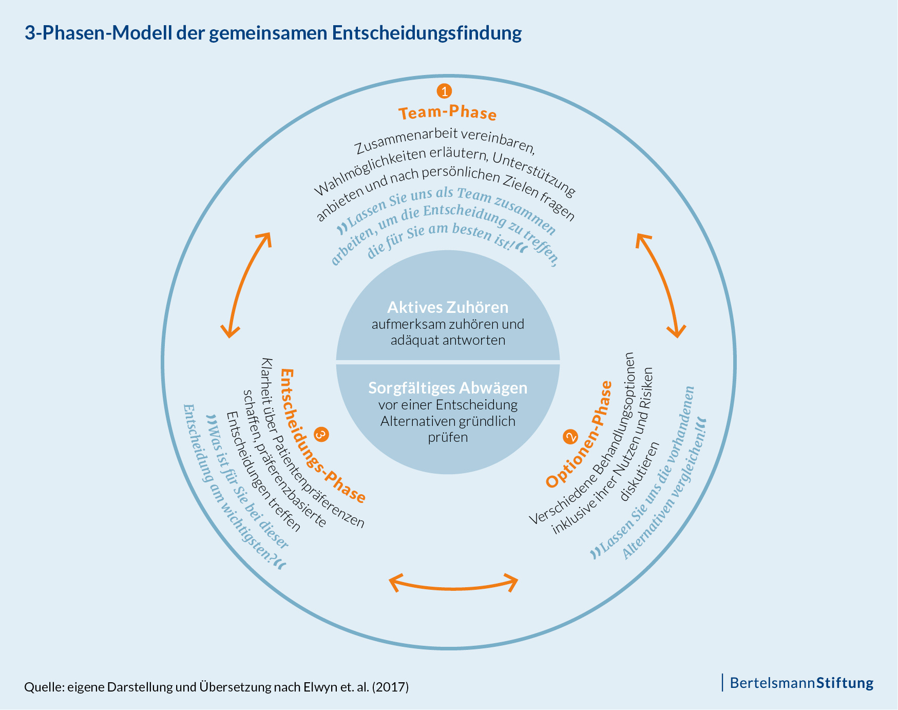 : Grafiken zur gemeinsamen Entscheidungsfindung Teilen Drucken Eine große Mehrheit der Bevölkerung wünscht sich, dass Arzt und Patient gemeinsam Entscheidungen treffen. Bertelsmann Stiftung Das Modell verdeutlicht die Komplexität von gemeinsam getroffenen Entscheidungen. Bertelsmann Stiftung In unserer Fokusgruppen-Befragung kristallisierten sich diese Gruppen von Faktoren heraus, die Einfluss auf Entscheidungen haben. Bertelsmann Stiftung