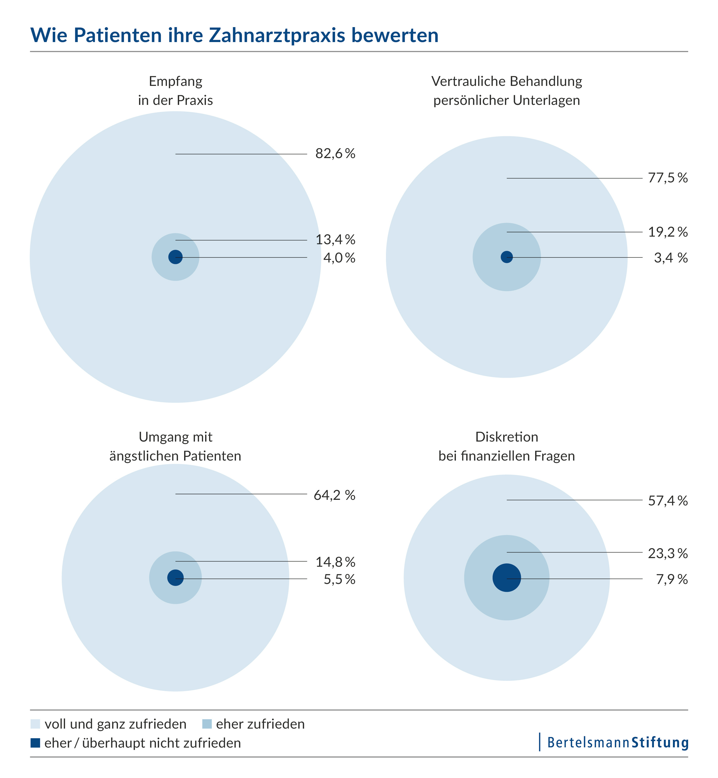 Die Zufriedenheit der Patienten mit der zahnärztlichen Versorgung in Deutschland ist sehr hoch. Das geht aus einer aktuellen Auswertung von über 10.000 Zahnarztbewertungen im Arztvergleichsportal „Weisse Liste“ und den darauf basierenden Portalen von AOK, BARMER GEK, Techniker Krankenkasse und Bertelsmann BKK hervor.