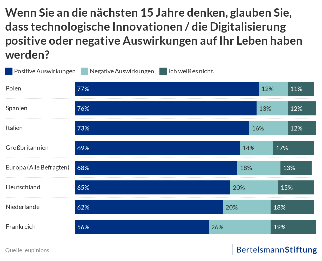 - Wenn Sie an die nächsten 15 Jahre denken, glauben Sie, dass technologische Innovationen / die Digitalisierung positive oder negative Auswirkungen auf Ihr Leben haben werden?