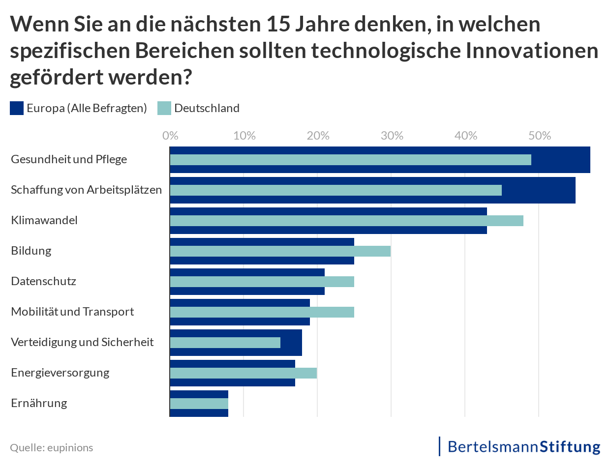 - Wenn Sie an die nächsten 15 Jahre denken, in welchen spezifischen Bereichen sollten technologische Innovationen gefördert werden?