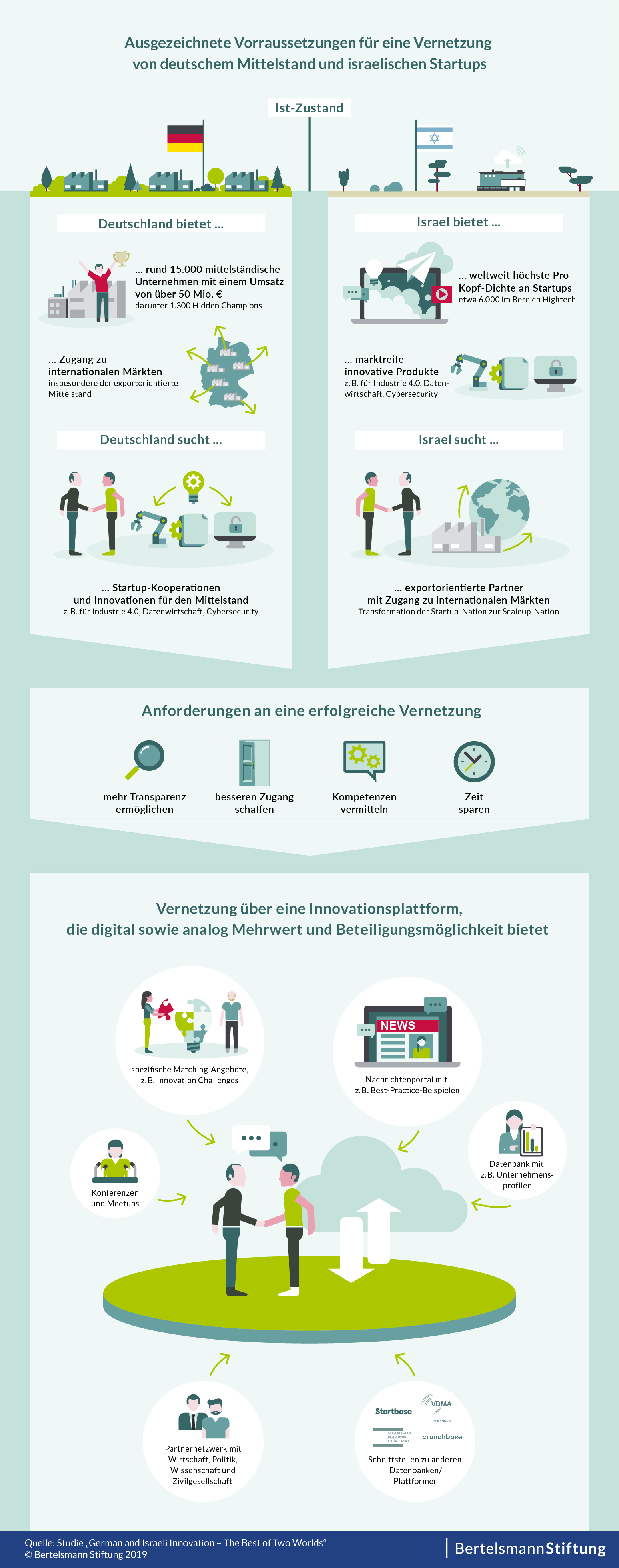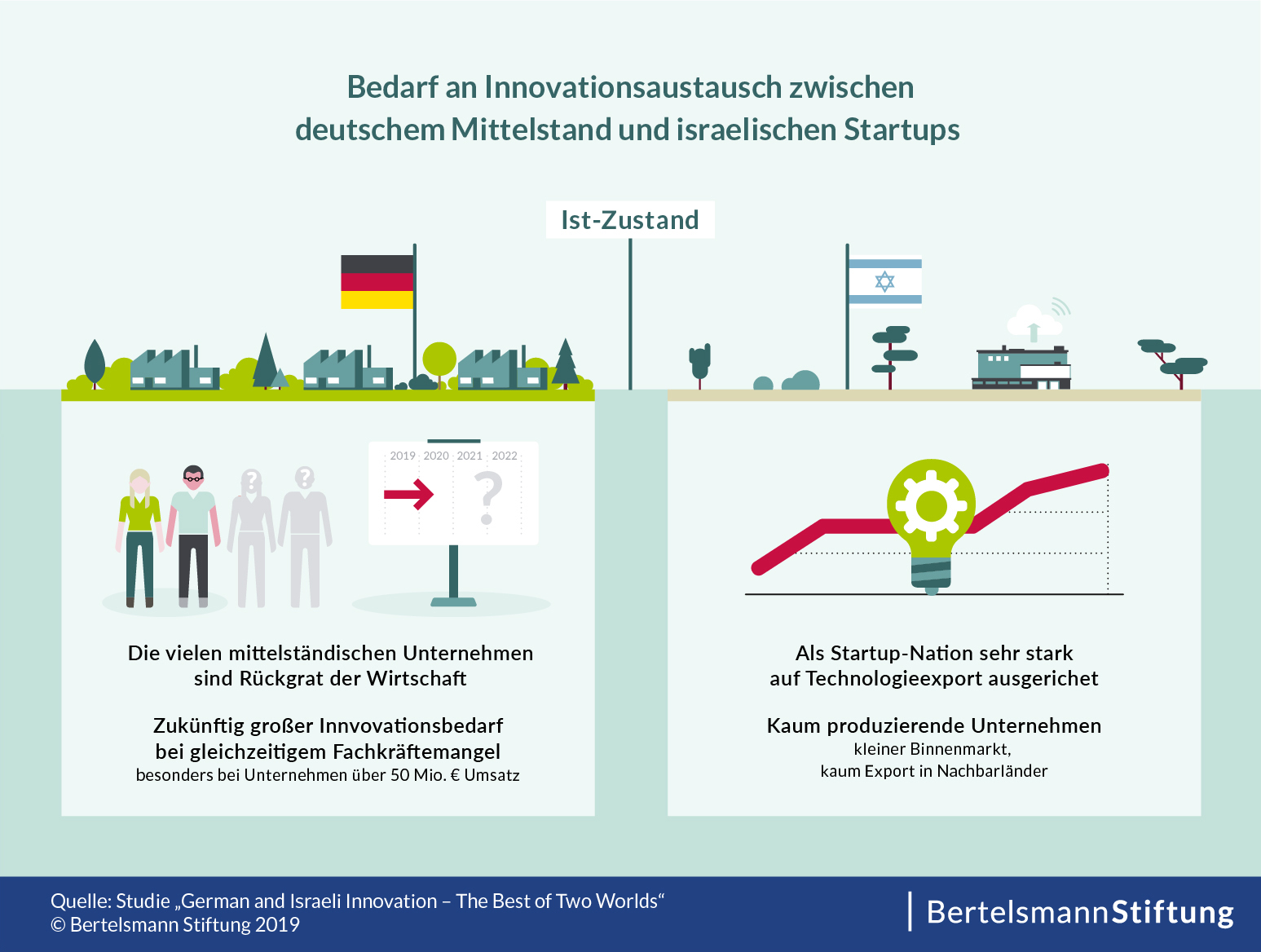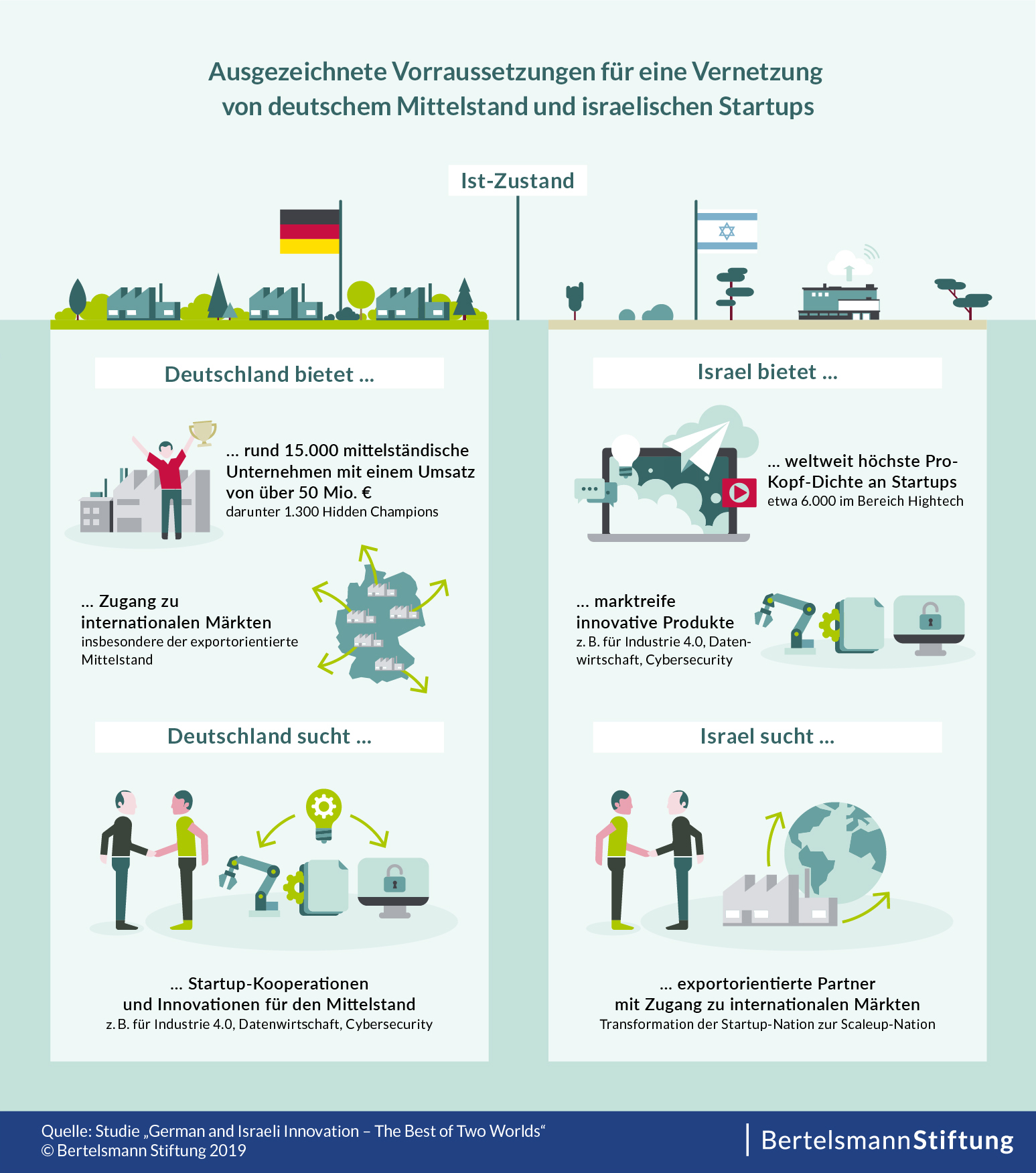 Mehr Informationen finden Sie in unserer Projektnachricht Silicon Wadi meets Hinterland – wie der deutsche Mittelstand und israelische Startups voneinander profitieren können. sowie in unserer Studie “German and Israeli Innovation –The Best of Two Worlds“.