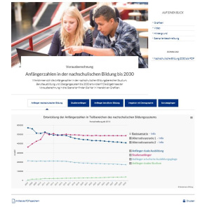 Lassen Sie sich die Ergebnisse der Berechnungen zu Anfängerzahlen in Berufsausbildung und Studium in interaktiven Grafiken anzeigen. weiter