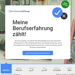 Die kostenfreie Website meine-berufserfahrung.de ermöglicht in nur 5 Minuten die bildbasierte und mehrsprachige Selbsteinschätzung beruflicher Erfahrungen in 12 Berufen. Jetzt neu dabei: Berufskraftfahrer/-in, Fachkraft im Gastgewerbe, Friseur/-in und Tiefbaufacharbeiter/-in – Schwerpunkt Straßenbauarbeiten. weiterlesen