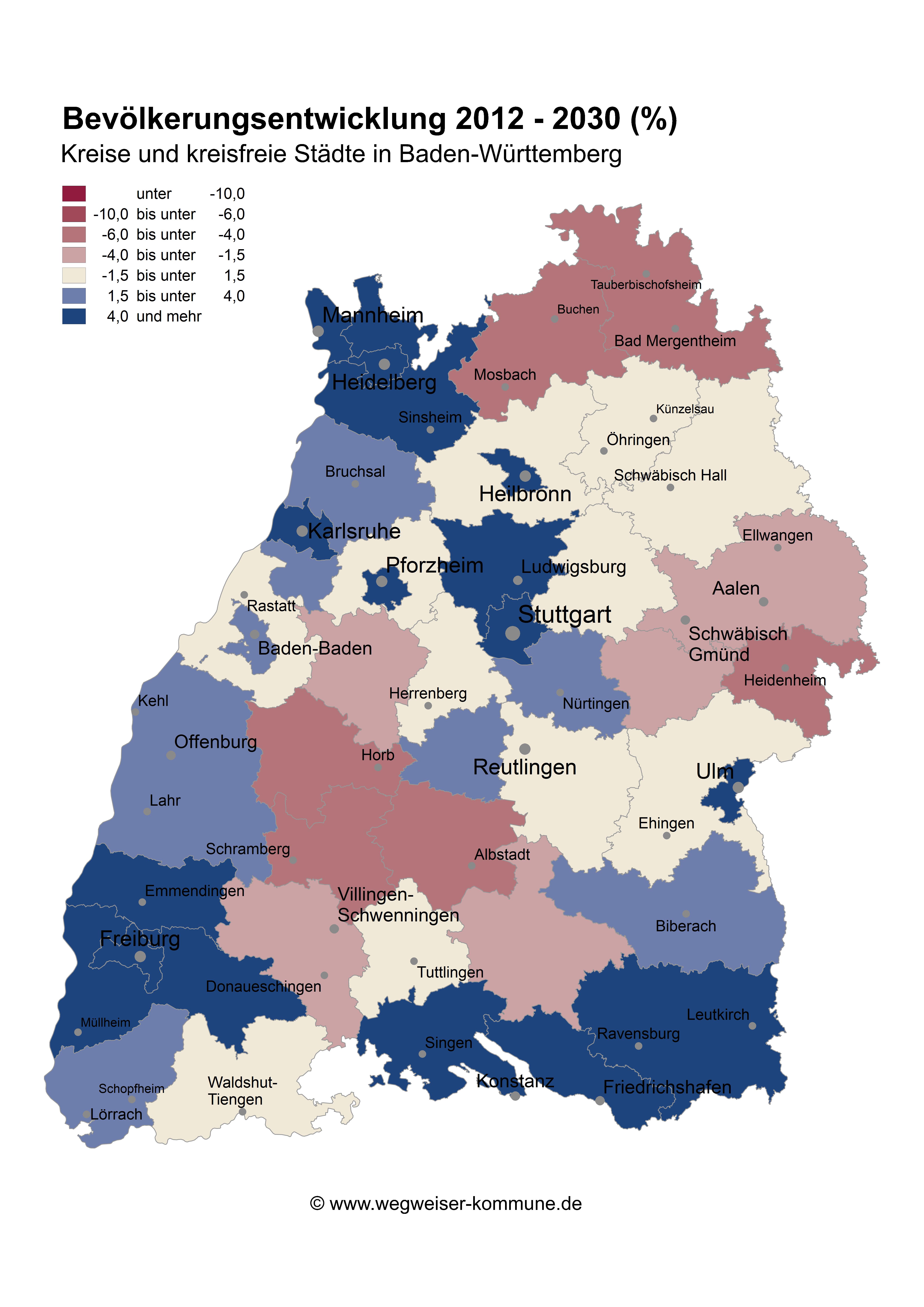 - Landkarte: Bevölkerungsprognose Baden-Württemberg