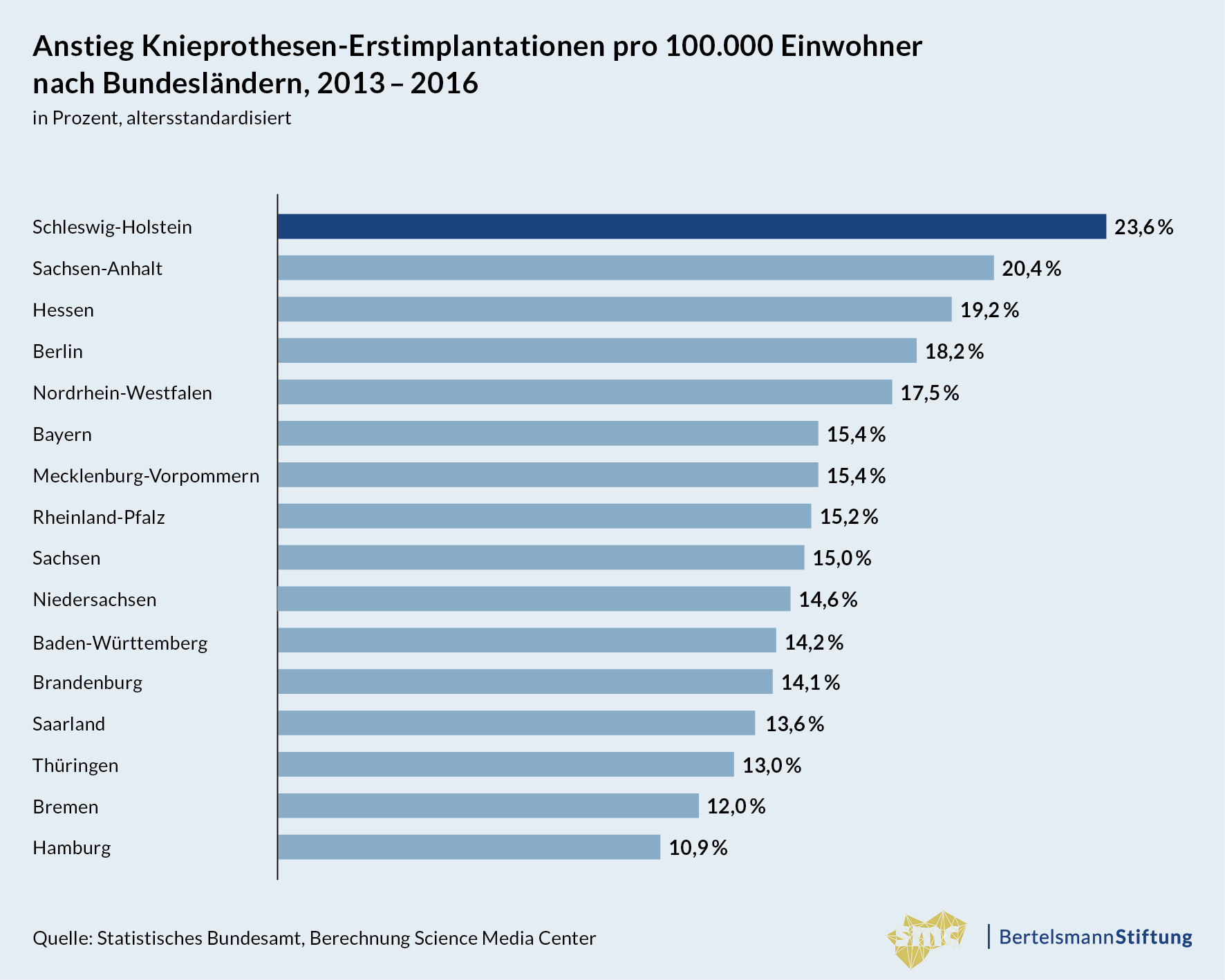 - Grafik: Anstieg der Knieprothesen-Erstimplantationen nach Bundesländern 2013-2016