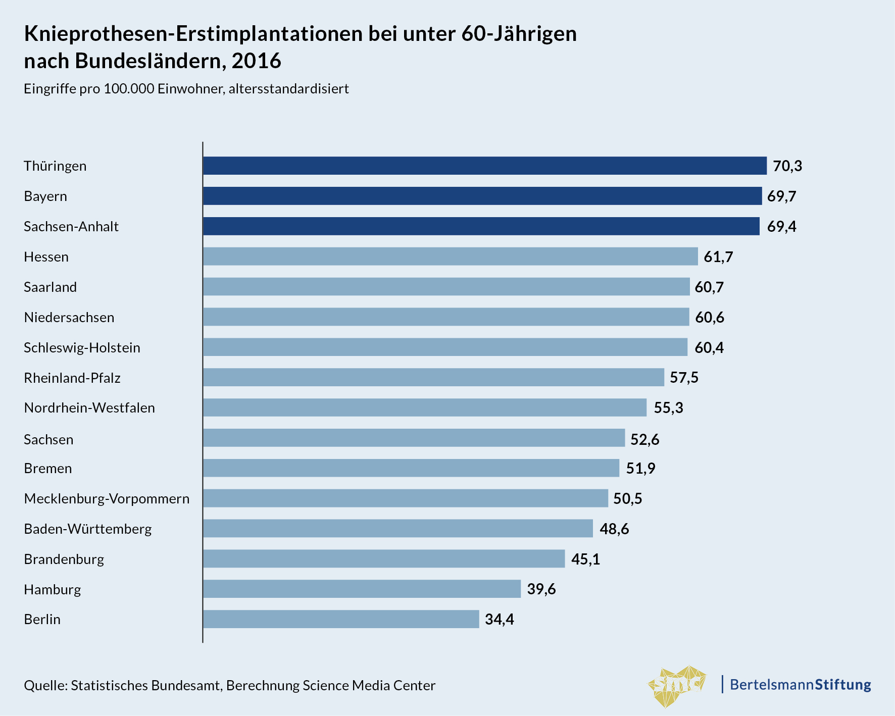 - Grafik: Knieprothesen-Erstimplantationen bei unter 60-Jährigen nach Bundesländern 2016