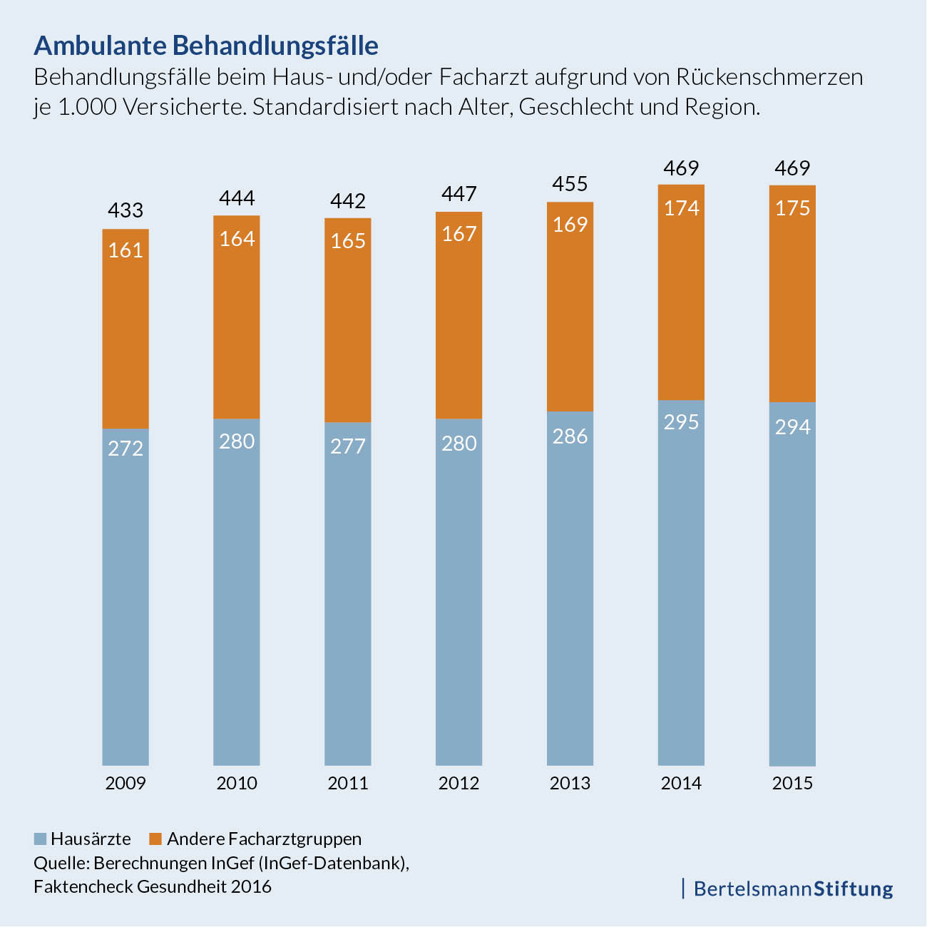 Im Auftrag der Bertelsmann Stiftung hat das Institut für angewandte Gesundheitsforschung (InGef) Analysen zu Behandlungsfällen und zum Ausmaß der Bildgebung aufgrund von Rückenschmerzen durchgeführt. Datengrundlage sind anonymisierte, repräsentative Daten von mehr als sieben Millionen Versicherten aus circa 70 gesetzlichen Krankenversicherungen. Zudem wurde mit TNS EMNID eine repräsentative Befragung zum Thema Rückenschmerzen durchgeführt. Die Ergebnisse wurden im aktuellen Faktencheck Rücken zusammengeführt.