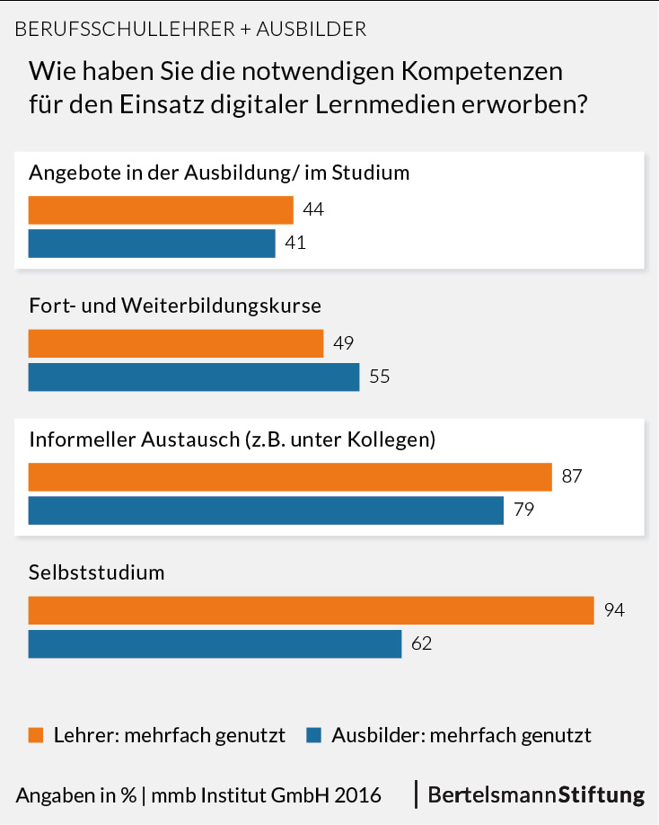 - Grafik: Berufsschullehrer und Ausbilder – Wie haben Sie die notwendigen Kompetenzen für den Einsatz digitaler Lernmedien erworben?