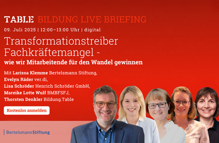 Digitalisierung, Dekarbonisierung, steigende Kosten, der Wandel der Arbeitskultur und der Fachkräftemangel sind Transformationstreiber, die Unternehmen zu Veränderungen zwingen. Ein Erfolgsfaktor für gelingende Transformation ist die Teilhabe der Mitarbeitenden. Das zeigt unsere Studie „Stetiger Wandel der Anforderungen“. Wie Unternehmen Mitarbeiter:innen für erfolgreiche Change-Prozesse gewinnen und einbeziehen können und welche Rolle Aus- und Weiterbildung dabei spielt, möchten wir mit Ihnen und unseren Referentinnen beim kostenlosen Live Briefing am 9. Juli diskutieren. Hier geht es zur Anmeldung