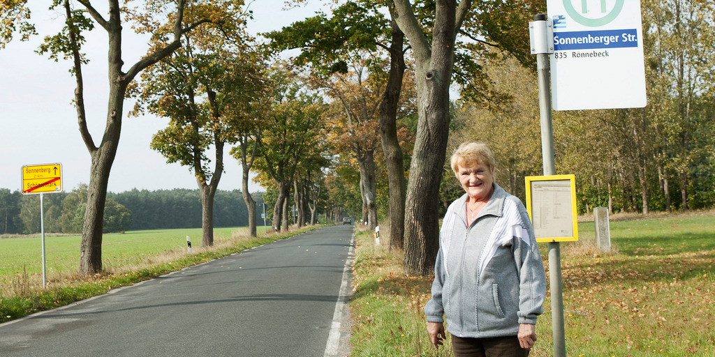 Edeltraut Schöbel musste ein Rezept in ihrer Hausarztpraxis abholen, dann war sie in einem Supermarkt, der Gelenkschoner im Angebot hatte, schließlich hat sie in einem Lebensmittelgeschäft noch etwas Aufschnitt und Gemüse eingekauft. Nun fährt sie in das Dorf Schönermark zurück, vier Kilometer von Gransee entfernt. Die Strecke wäre auch gut mit dem Fahrrad zu bewältigen, aber seit einem schweren Fahrradunfall vor sechs Jahren ist Edeltraut Schöbel auf keinen Sattel mehr gestiegen. Heute ist sie insgesamt zwei Stunden unterwegs gewesen. Wäre sie mit der normalen Buslinie gefahren, hätte es fast dreimal so lange gedauert.