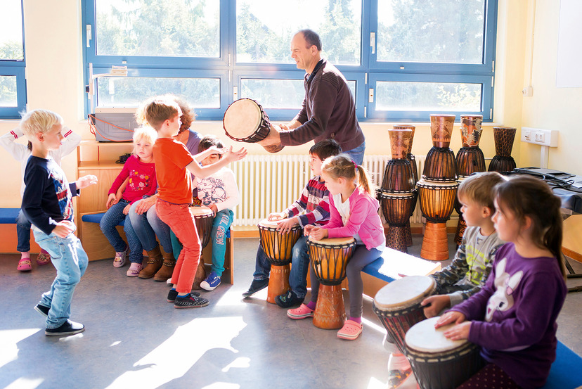 "Dum-Chi-Ka", ruft Robert (10) und schlägt zum Takt die Hände abwechselnd gegen seine Brust oder die Oberschenkel, mal schneller, mal langsamer, aber immer wieder: Ein wenig scheu schaut er dabei in die Runde und beobachtet aus den Augenwinkeln die anderen Kinder im Raum, die unter Anleitung ihrer Musiklehrerin Ann Kathrin Hollmann ebenfalls mit der koordinativen Rhythmus-Übung beschäftigt sind. Robert wird beim Body-Percussion immer lockerer, je länger die Übung dauert. Am Ende wirkt seine fröhliche Performance wie eine Mischung aus lautem Rufen und geschmeidigem Rap-Rhythmus. Roberts Augen strahlen, selbstvergessen ruft er noch zwei Mal: "Dum-Chi-Kaaaaa – Dum-Chi-Kaaaa ...!", bis er bemerkt, dass seine Lehrerin den Zeigefinger auf ihre Lippen gelegt hat – an der "Musikalischen Grundschule" in Herford das Signal für alle, nun einen Moment still zu sein.