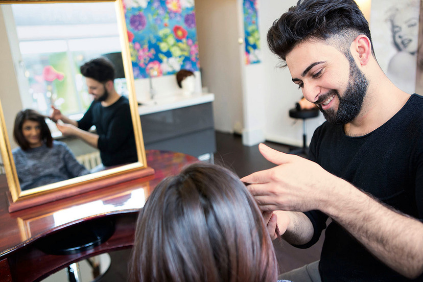 "Ich wollte schnell lernen, aber das war dort nicht möglich", erzählt Neshwan, "wir schlugen einfach nur die Zeit tot." Neshwan nervte die Schulämter so lange mit seinem Wunsch nach einer "richtigen" Ausbildung, bis er schließlich 2013 in der Maria-Stemme-Schule in Bielefeld den Hauptschulabschluss in Angriff nehmen konnte. Ein Jahr später war das geschafft. Deutsch lernt er nebenbei immer noch auf eigene Initiative, und auch auf seinen Traum-Beruf des Friseurs bereitete er sich vor, indem er in der eigenen Wohnung Freunden und Bekannten die Haare schön machte. Dass Neshwan sein Praktikum doch noch machen konnte, ist übrigens Wieghorsts Engagement geschuldet. "Ich habe irgendwann den zuständigen Abteilungsleiter bei der Agentur für Arbeit angerufen, nachdem wir auf Sachbearbeiter-Ebene nicht weitergekommen sind, und habe ihm Neshwans Fall geschildert. Plötzlich ging's dann." "Aber es darf natürlich nicht sein, dass das Schicksal von Jungs wie Neshwan von der Eigeninitiative Einzelner abhängt. Es müsste einfacher sein für diese motivierten jungen Menschen, hier Fuß zu fassen." Inzwischen macht Neshwan ein so genanntes EQJ, eine einjährige Qualifikation für eine richtige Ausbildungsstelle. "Die wird auf die Lehrzeit angerechnet, wenn die Leistungen gut sind", sagt Hans Wieghorst und bestätigt: "Praktisch ist Neshwan top, hier im Laden macht er sich prima, ist auch beliebt bei den Kollegen. Aber durch seine Sprachnachteile hat er manchmal noch mit dem theoretischen Stoff Probleme – deshalb geht er nur in das zweite Lehrjahr, wenn es Sinn für ihn macht. Aber wie ich das sehe, schafft er das." Neshwan schaut ihn an, lächelt fein und zieht die Stirn leicht in Falten, als wolle er sagen: Wo, bitteschön, ist das Problem?