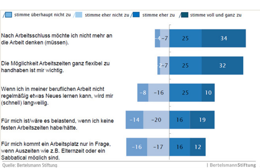 Nicht mehr zur Arbeit gehen zu müssen – das ist für mehr als die Hälfte der Erwerbstätigen in Deutschland keine Alternative. Selbst wenn das Arbeitslosengeld sehr hoch wäre, würden fast drei Viertel jeden Morgen lieber den Arbeitsplatz aufsuchen als Transferleistungen zu beziehen. Auch ein hoher Geldgewinn wäre nur für 20 Prozent ein Grund, aus dem Berufsleben auszusteigen. Das sind zentrale Ergebnisse einer repräsentativen Umfrage der Bertelsmann Stiftung und des GfK Vereins.