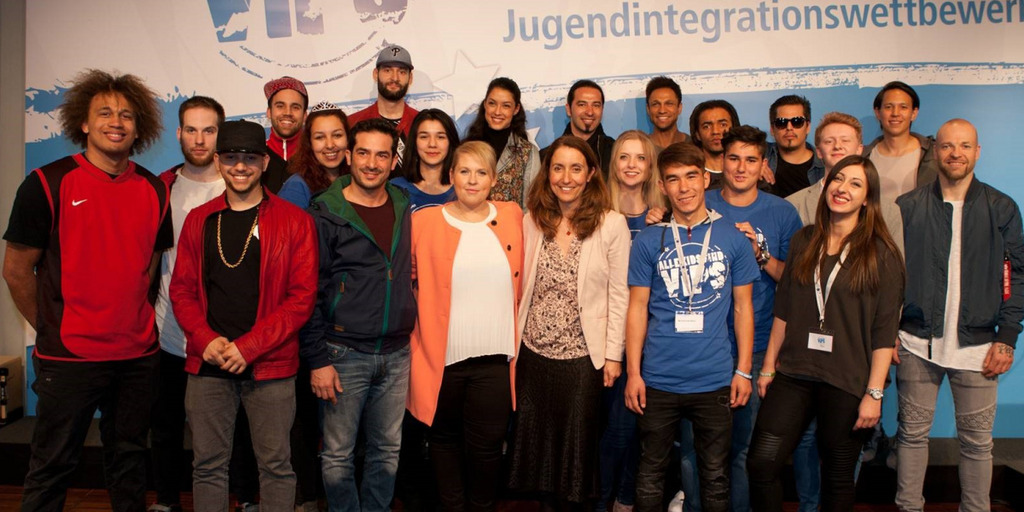 Mit den Jugendlichen freuten sich Daniel Aminati, Culcha Candela, Tayfun Baydar, Bülent Ceylan, Rebecca Mir und die Schirmherrin des Projekts, Aydan Özoğuz, Staatsministerin sowie Beauftragte der Bundesregierung für Migration, Flüchtlinge und Integration.