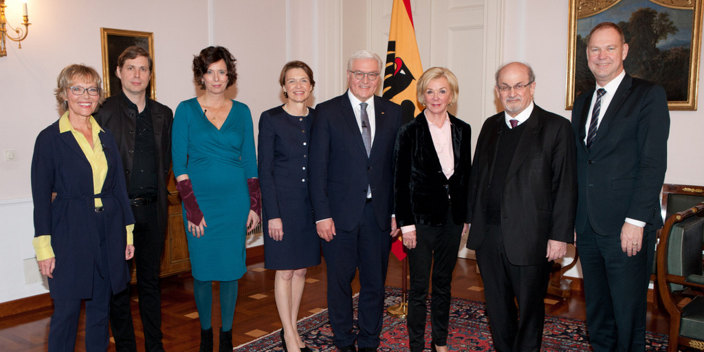 Gemeinsam mit Sir Salman Rushdie, der österreichischen Autorin Eva Menasse und dem deutschen Autoren Daniel Kehlmann diskutierte Bundespräsident Steinmeier auf dem zweiten Forum Bellevue über die "Freiheit des Denkens in unruhigen Zeiten". In der Diskussion ging es vor allem um die Rolle von Künstlern und Intellektuellen und die Bedeutung von Meinungsfreiheit und dem geschriebenen Wort für die Zukunft unserer Demokratie.