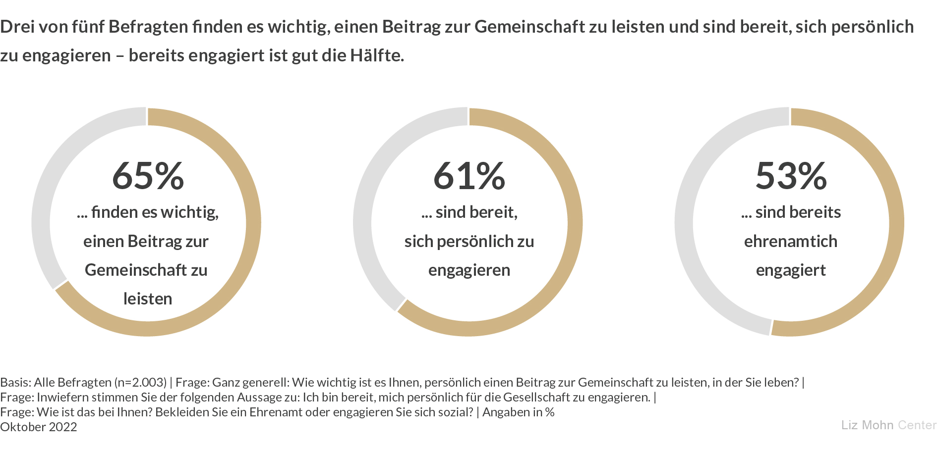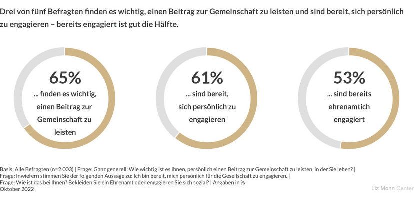 Von allen für alle – unter diesem Motto könnte eine soziale Pflichtzeit für alle Menschen in Deutschland stehen. Um den gesellschaftlichen Zusammenhalt zu stärken, hat Bundespräsident Frank-Walter Steinmeier ein altersunabhängiges soziales Engagement, dessen Dauer frei wählbar ist, angeregt. Mit einer solchen Pflichtzeit könnten nach Einschätzung des Bundespräsidenten die Demokratie gestärkt werden. Doch wie kommt dieser Vorschlag in der Bevölkerung an? Dieser Frage ist das Liz Mohn Center der Bertelsmann Stiftung nachgegangen.