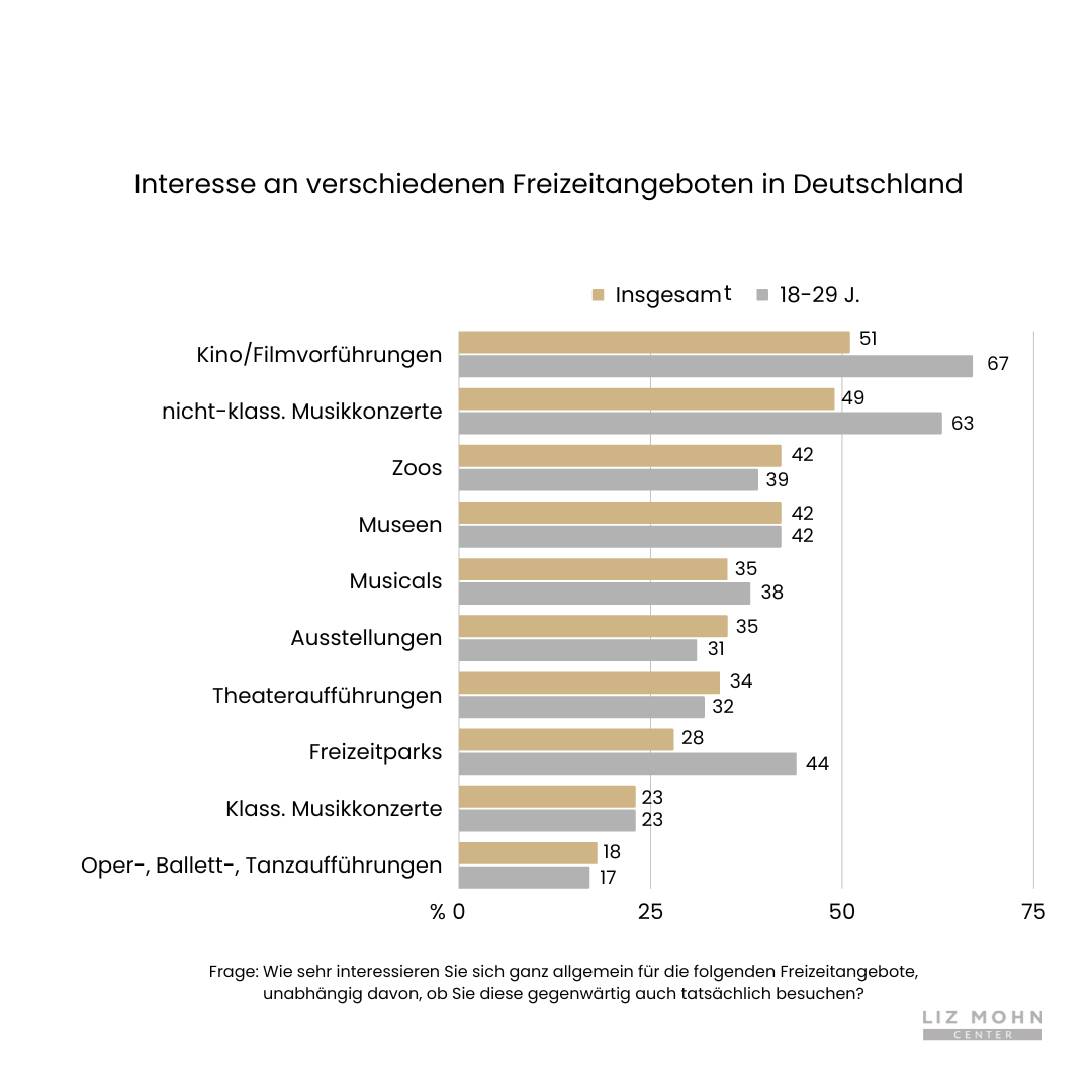 Den Menschen in Deutschland (91 Prozent) ist es wichtig, die kulturellen Angebote in Theaterhäusern für kommende Generationen zu erhalten. Eine große Mehrheit (76 Prozent) ist zudem der Meinung, diese sollten weiter mit öffentlichen Mitteln finanziert werden. Die Angebote gehörten zur kulturellen Identität (82 Prozent) beziehungsweise Bildung (91 Prozent) in Deutschland. Zu diesen Ergebnissen kommt der neue "Relevanzmonitor Kultur" des Liz Mohn Centers der Bertelsmann Stiftung. Mit der bundesweit repräsentativen forsa-Umfrage ist das Liz Mohn Center erstmals der Frage nachgegangen, welchen Stellenwert Kulturangebote in Deutschland haben. Deutlich wird dabei ein fast einheitlicher Rückhalt in der Bevölkerung: Die Arbeit der Theater sei wichtig, solle weiter gefördert und für die Zukunft erhalten werden.