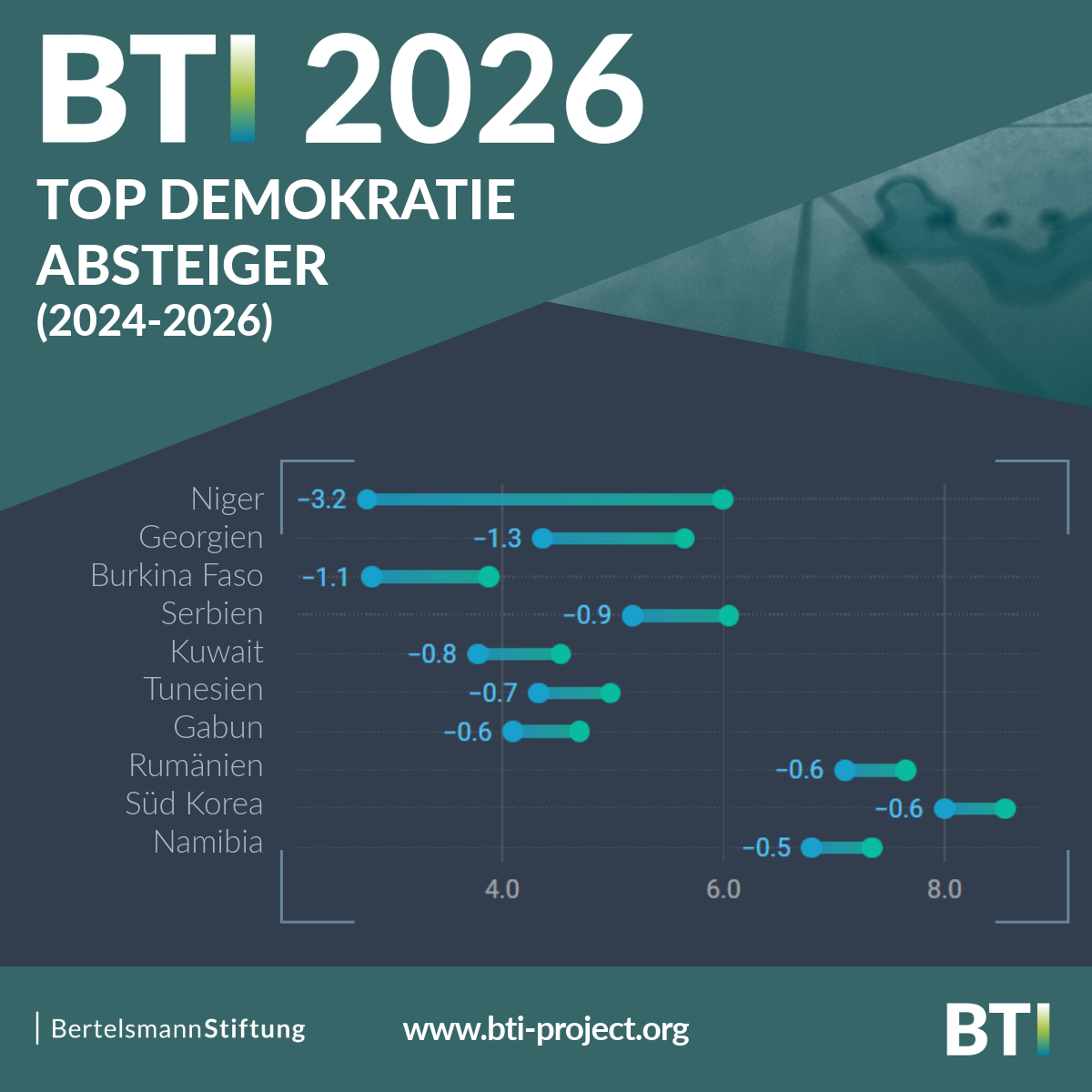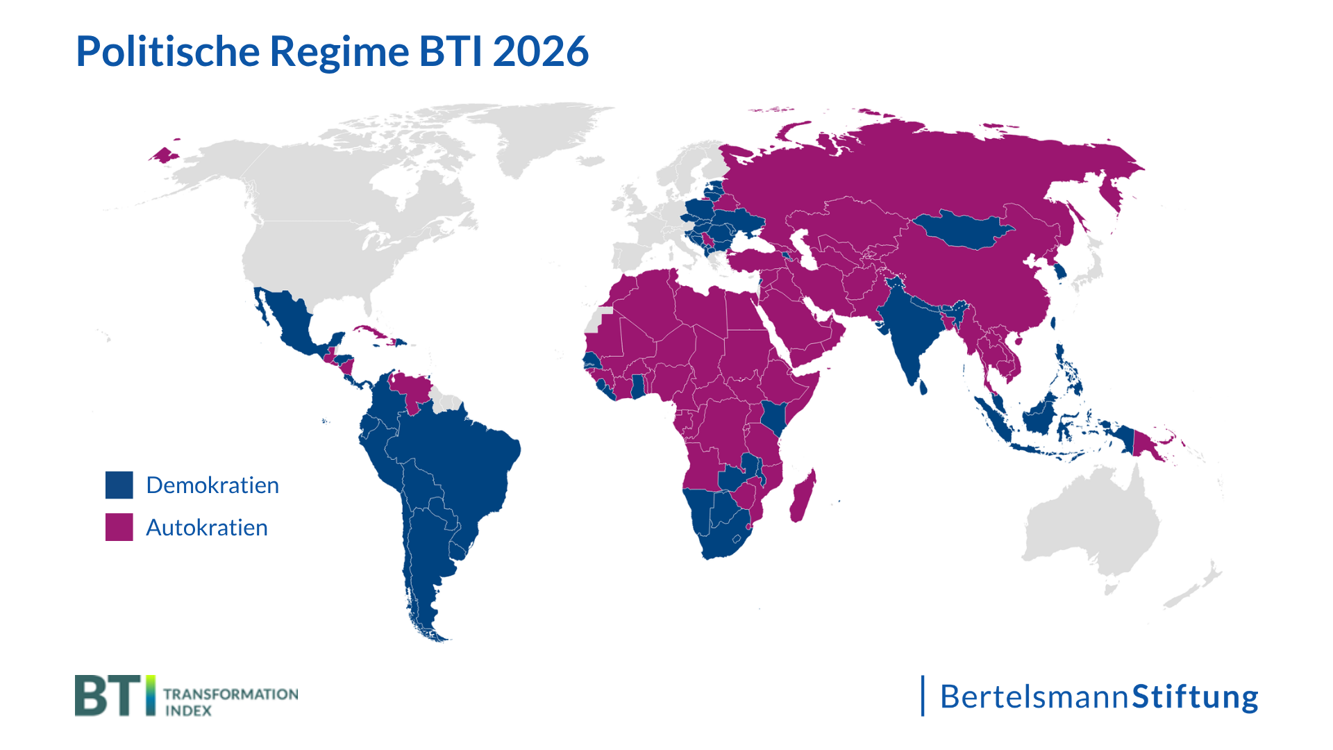 Auch Wahlen verlieren an Integrität. In 54 Prozent der untersuchten Länder erfüllen sie keine demokratischen Mindeststandards mehr. Militärputsche wie in Gabun oder Niger setzen sie ganz aus, andernorts – etwa in Belarus, Russland oder Ruanda – sind sie streng kontrollierte Legitimationsrituale, deren Ergebnis bereits weit vor der Stimmabgabe feststeht. In Georgien und Serbien führten gravierende Wahlmanipulationen zur BTI-Einstufung als Autokratien.