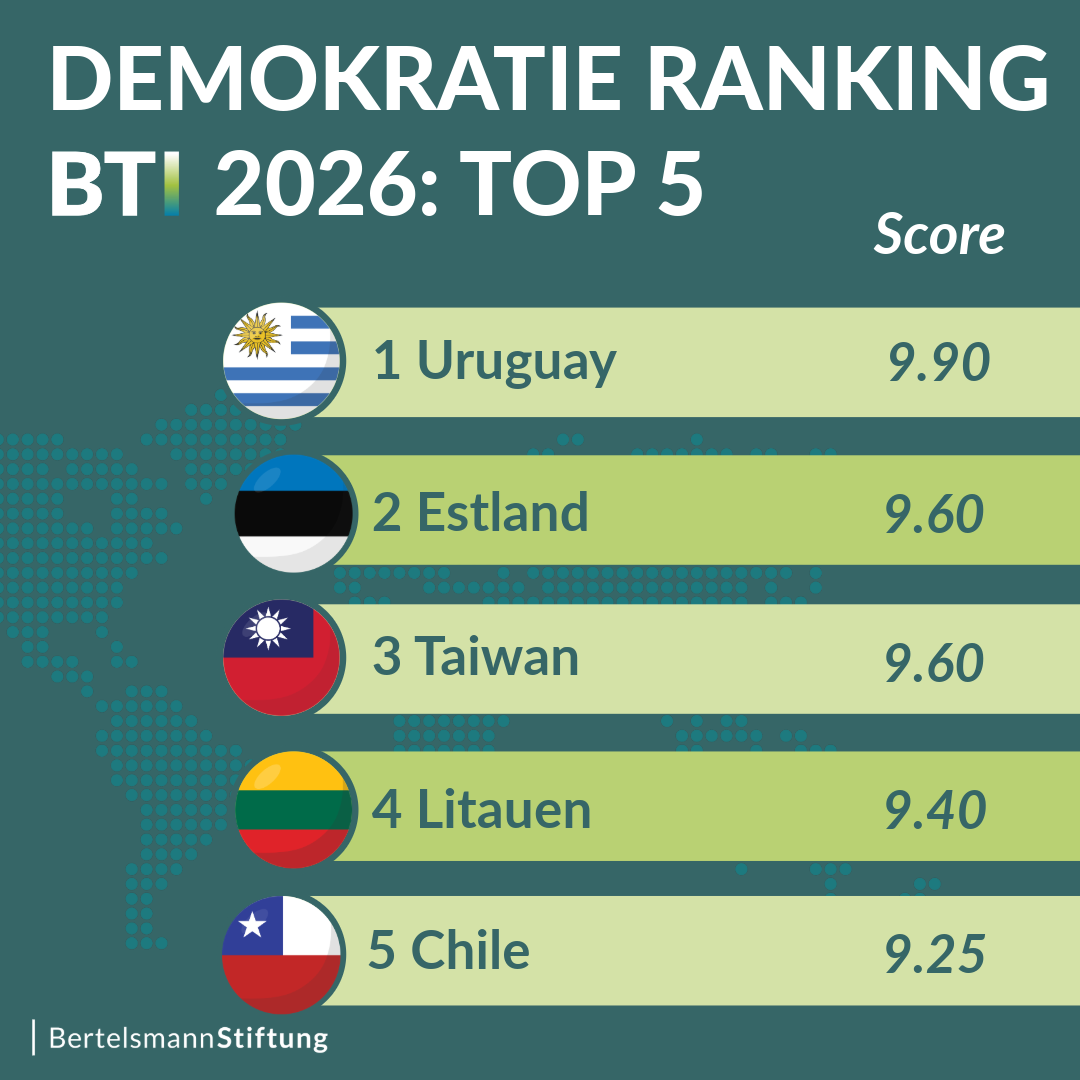 Was der Blick auf Wahlen jedoch ebenfalls zeigt: Das Ergebnis zahlreicher freier und fairer Wahlen waren friedliche Regierungswechsel. In Madagaskar, Tansania und Venezuela hingegen führten manipulierte Urnengänge zu Massenprotesten. Diese wurden zwar gewaltsam niedergeschlagen, verstärkten aber in vielen Fällen die politische Mobilisierung über den Wahltermin hinaus. Im Senegal setzte das Verfassungsgericht die termingerechte Durchführung der Präsidentschaftswahl gegen den Willen des Amtsinhabers durch. Brasilien, Lettland und Taiwan stärkten die Integrität ihrer Wahlen durch Maßnahmen gegen Desinformation. In Moldau behauptete sich die proeuropäische Präsidentin und Reinhard-Mohn-Preisträgerin Maia Sandu trotz massiver externer Einflussversuche.