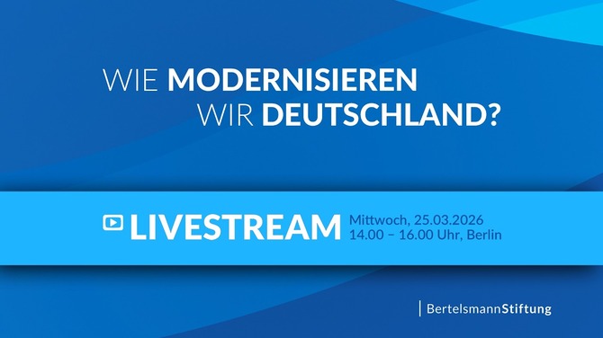 Die Veranstaltung wird am 25.03.2026 von 14:00 bis 16:00 Uhr im Livestream übertragen. Abrufbar ist der Livestream unter: Wie modernisieren wir Deutschland? | Rede von Vizekanzler Lars Klingbeil & Diskussion.
