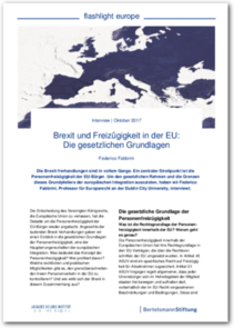 Die Entscheidung Großbritanniens für den Austritt aus der EU bedeutet eine Zäsur für die europäische Integration. Beachtlich sind auch die rechtlichen Herausforder-ungen, die der Brexit mit sich bringt. Das Recht der Freizügigkeit der Bürgerinnen und Bürger der EU rückt erneut in den Vordergrund. Angesichts der laufenden Brexit-Verhandlungen gibt dieses flashlight europe einen Einblick in die gesetzlichen Grundlagen der Personenfreizügigkeit, eine der Haupterrungenschaften des europäischen Einigungsprojekts.