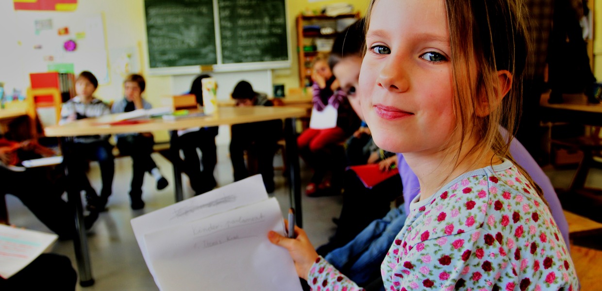 Auch die Raum- und Pausenhofgestaltung zeigt: Die Schule ist ein flexibler Lernort für alle Kinder. Die Schulräume sind so gestaltet, dass die Kinder sich frei bewegen, an verschieden gestalteten Arbeitsplätzen wie Computer-, Lese- und Mathematikecke lernen, sich zusammensetzen und auch zurückziehen können. Themenräume wie Kunst-, Musik-, Englisch-, Computer-, Experimentier- und Bewegungsraum ergänzen die Möglichkeiten im Schulgebäude. Auf dem Pausenhof findet man unter anderem einen Schulgarten und ein grünes Klassenzimmer. Hier kann im Freien gelernt und geforscht werden. Selbständigkeit und Verantwortungsgefühl zu vermitteln, das ist ein wichtiges Anliegen der Schule. Klassenweise übernehmen ältere Kinder Patenschaften für Erstklässler. Im wöchentlichen Kinderparlament diskutieren die gewählten Klassenvertreter aktuelle Themen und fällen demokratische Entscheidungen. So wurden z.B. die Schulregeln vom Kinderparlament selbst erstellt. Bei der Planung und Gestaltung des Außenbereichs haben die Kinder aktiv mitgewirkt. Sie organisieren auch die Ausleihe von Büchern und Spielgeräten selbst. Die Schule hat eine Partnerschule in Indien, die durch viele Aktionen der Schüler unterstützt wird. Für die Eltern gibt es ein monatliches Elterncafé und verschiedene themenbezogene Elternabende. Sie sind ausdrücklich eingeladen, in den Klassen mitzuarbeiten, z.B. beim Forschen und Lesen. Die Schule ist mit vielen Kooperationspartnern innerhalb der Gemeinde vernetzt. Einmal pro Woche lesen Schüler den Bewohnern des sozial-psychiatrischen Zentrums vor Ort Geschichten vor. Ausgehend von der Grundschule und der benachbarten Schule wurde der Arbeitsprozess zur Entwicklung von Eitorf als Inklusionsgemeinde angestoßen.