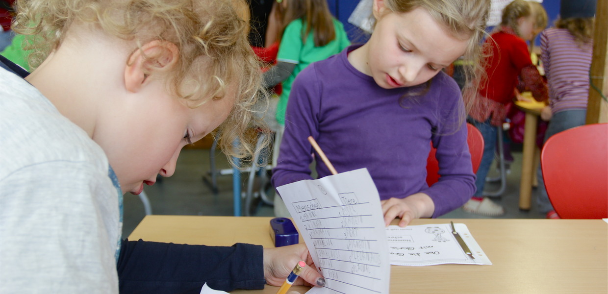 An der Kinderschule gibt es insgesamt fünf Lerngruppen, die alle nach Farben benannt sind: Orange, Rot, Gelb, Blau und Grün. Die Fünfjährigen besuchen die orangefarbene Gruppe. Sie ermöglicht den Kindern ein langsames Hineinwachsen in die offenen Strukturen der Kinderschule und gibt ihnen viel Zeit für ein entwicklungsgerechtes frühes Lernen. Die jahrgangsübergreifende gelbe und rote Gruppe (Klassenstufe 1 und 2) bietet den Kindern viel Freiraum für ihre eigene Lernentwicklung. In vielen Phasen der Freiarbeit entscheiden die Kinder selbst, an welchen Aufgabenstellungen in den Bereichen Mathe und Deutsch sie arbeiten und bestimmen auch deren Reihenfolge. Neben den Phasen der Freiarbeit haben alle Kinder auch Pflichtarbeitsphasen. Die Kinder der grünen und blauen Lerngruppe (Klassenstufe 3 und 4) arbeiten in dieser Zeit in ihren Lerngruppen jeweils im wöchentlichen Wechsel in Mathe und in Deutsch.
