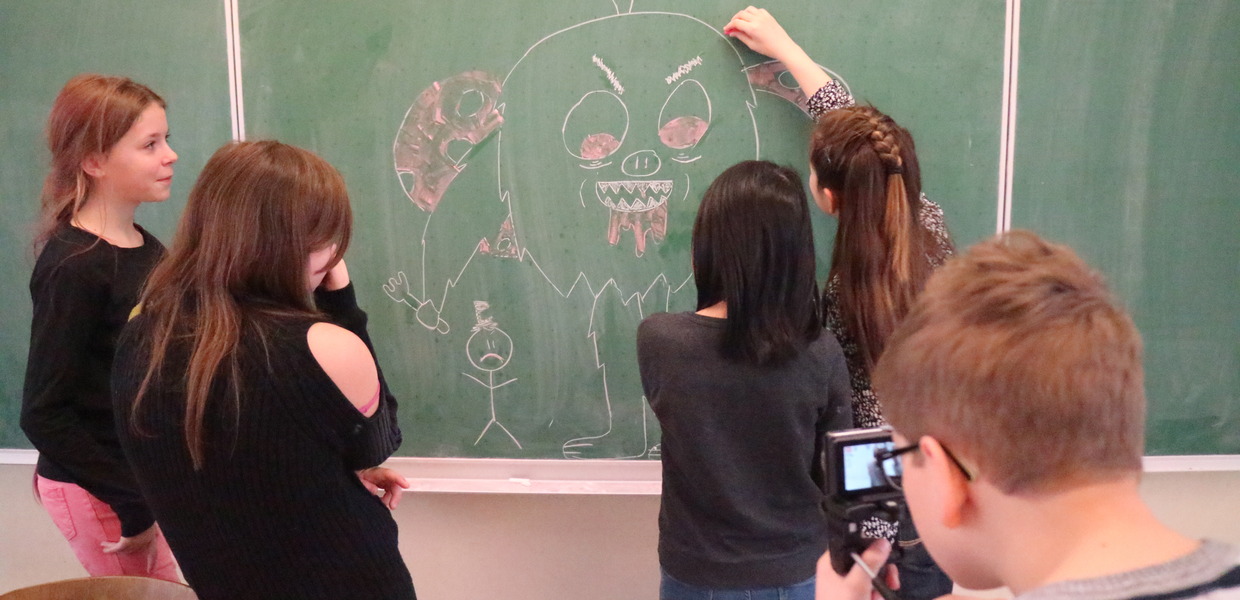 Jeder Tag ist anders für Sonderpädagogin Andrea Krause am Schulcampus Rostock-Evershagen, die didaktische Leiterin des Campus. Heute Morgen stattet sie als erstes einem Schüler einen Besuch ab. Sie trifft Yannik* in der ersten Stunde in einer AG zum Thema filmische Animation an. Denn an der gebundenen Ganztagsschule finden die AGs auch tatsächlich den ganzen Tag über zu verschiedenen Zeitpunkten statt und tragen dazu bei, den Schultag für die 935 Schülerinnen und Schüler abwechslungsreich und spannend zu gestalten.