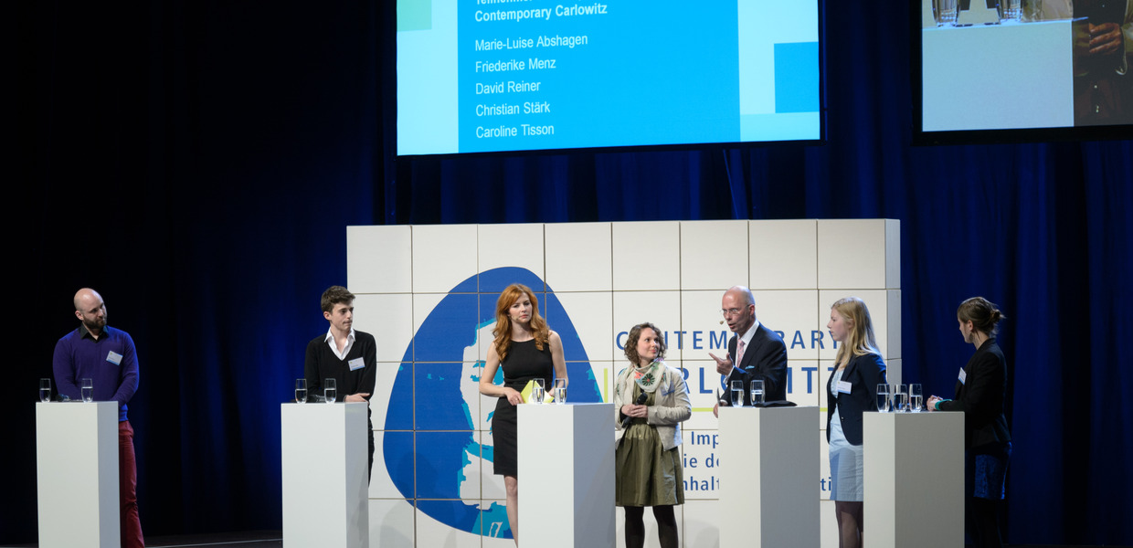 Im Anschluss an die Rede der Bundeskanzlerin kam die junge Generation zu Wort. Repräsentanten des Projektes „Contemporary Carlowitz“, das Bertelsmann Stiftung und Rat für Nachhaltige Entwicklung gemeinsam durchgeführt haben, diskutierten die von ihnen selbst erarbeiteten Lösungsideen mit Mitgliedern des Rates. Themen der Diskussion waren unter anderen Wachstum, Konsum, Digitale Gesellschaft und Nachhaltigkeit, Bildung und Energie. Zwei Filme „Der Schatz in der Schublade“ und „Das Gold liegt auf der Straße“, die von den Teilnehmern selbst konzipiert und produziert worden sind, wurden einleitend vorgestellt.