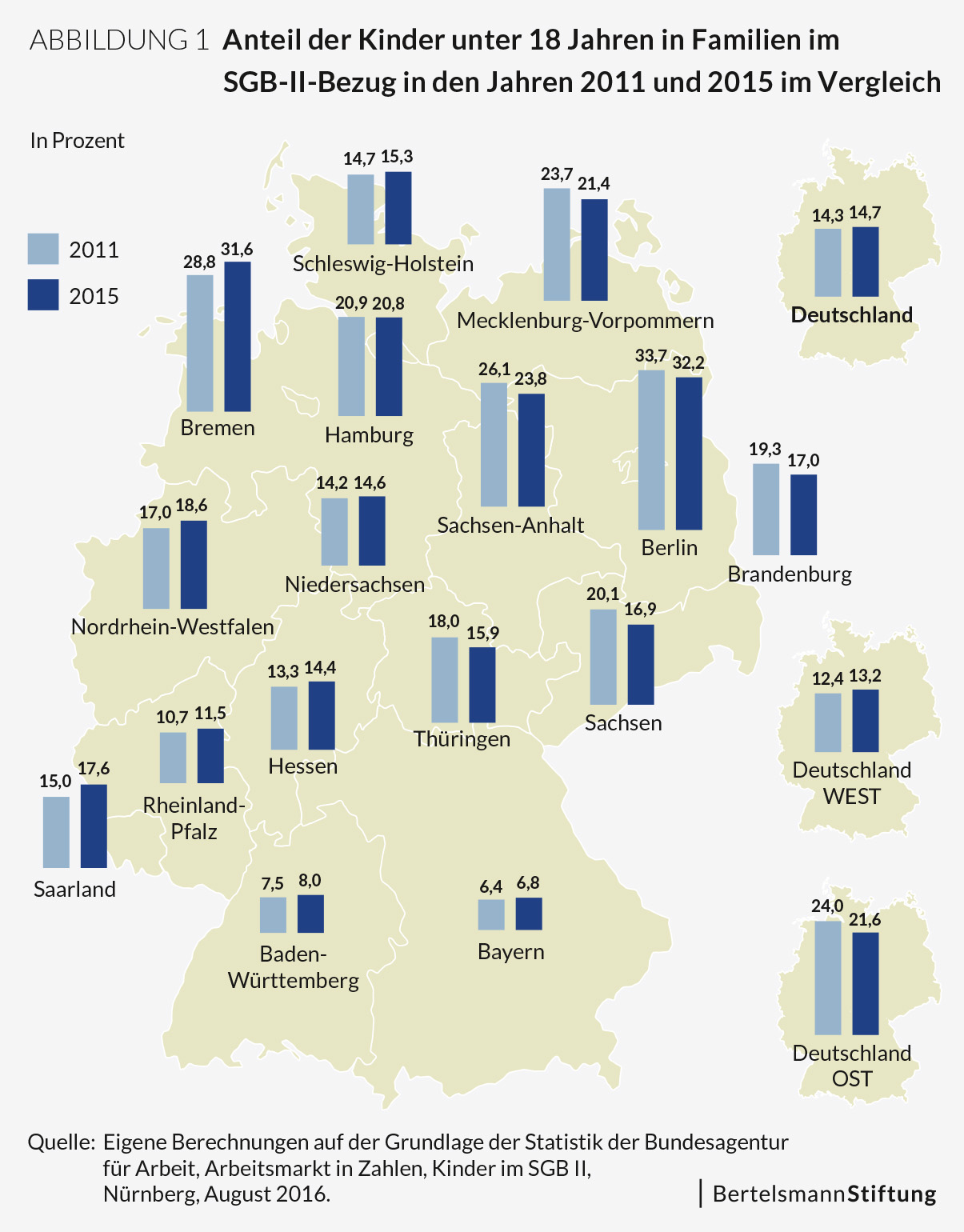 Je länger Kinder in Armut leben, desto negativer sind die Folgen für ihre Entwicklung und ihre Bildungschancen. Sie haben häufig kein eigenes Zimmer, keinen Rückzugsort für Schularbeiten, essen kaum oder gar kein Obst und Gemüse. Verglichen mit Kindern in gesicherten Einkommensverhältnissen sind arme Kinder häufiger sozial isoliert, gesundheitlich beeinträchtigt und ihre gesamte Bildungsbiografie ist deutlich belasteter.
