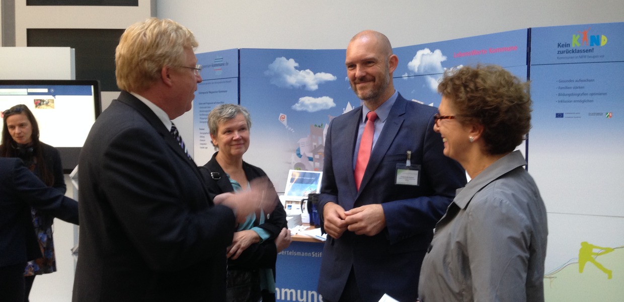Der Kongress wurde von Ralf Kleindiek, Staatssekretär im Bundesministerium für Familie, Senioren, Frauen und Jugend, eröffnet. Im Gespräch mit den Kollegen am Stand der Bertelsmann Stiftung wurden die Möglichkeiten angesprochen, die die Digitalisierung im Hinblick auf die Alterung der Gesellschaft vor allem im demografisch stark betroffenen ländlichen Raum bietet.