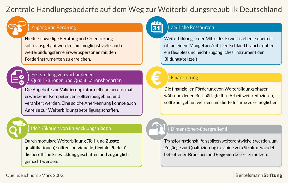 Unübersichtliches, fragmentiertes Beratungssystem, das daher für viele Gruppen (Geringqualifizierte, Randbelegschaften, ...) intransparent ist und diese nicht erreicht, auch wenn neuere Initiativen z. B. im Rahmen der Nationalen Weiterbildungsstrategie Beratungsangebote ausbauen und vernetzen.
