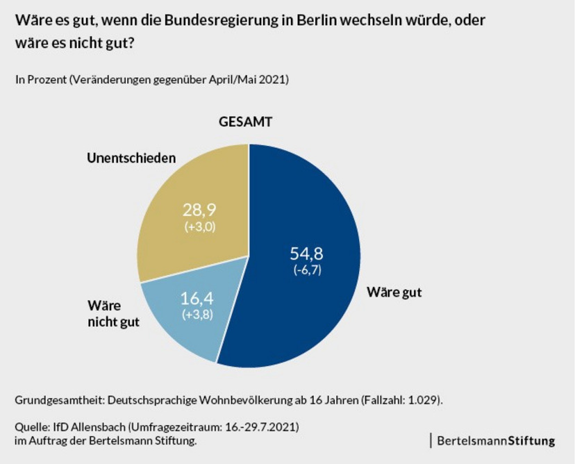 Gefragt wird aber nur danach, ob es gut wäre, „wenn die Bundesregierung in Berlin wechseln würde“. Ist das nicht nach jeder Wahl so? Zumal bei dieser Wahl ja die amtierende Bundeskanzlerin gar nicht wieder antritt?
