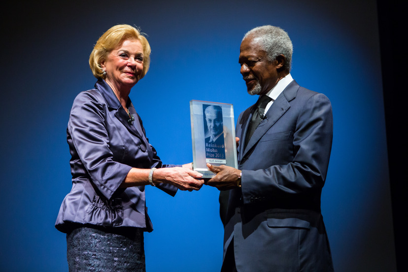 Nobel Peace Prize laureate and former Secretary-General of the United Nations Kofi Annan receives the 2013 Reinhard Mohn Prize. With the award, the Bertelsmann Stiftung is honoring Annan's exemplary efforts to promote sustainable development around the world. Thanks to his work, many political, economic and social initiatives are now underway globally, nationally and locally to promote sustainable and inter-generationally just development.