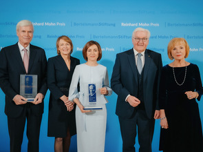 Our foundation today awarded its Reinhard Mohn Prize to the chairman of the Peres Center for Peace and Innovation, Nechemia ("Chemi") Peres. The topic of the 2020 Reinhard Mohn Prize is "Fostering Innovation. Unlocking Potential." Due to the pandemic, it was not possible to award the prize until this year. We are using the prize to honor the entrepreneur for his outstanding commitment to promoting innovation that serves both business and society. Peres accepted the prize, which comes with an award of €200,000, from Liz Mohn, our worldwide representative, in Gütersloh.