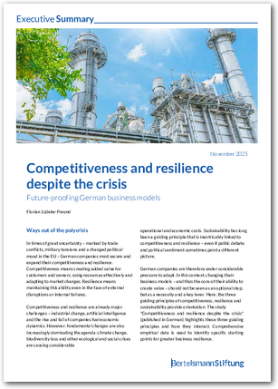 Global uncertainties, geopolitical tensions, technological upheavals, and ecological crises are challenging the German economy as rarely before. The Bertelsmann Stiftung's new study, “Competitiveness and Resilience Despite the Crisis,” shows that in order to survive in the...
