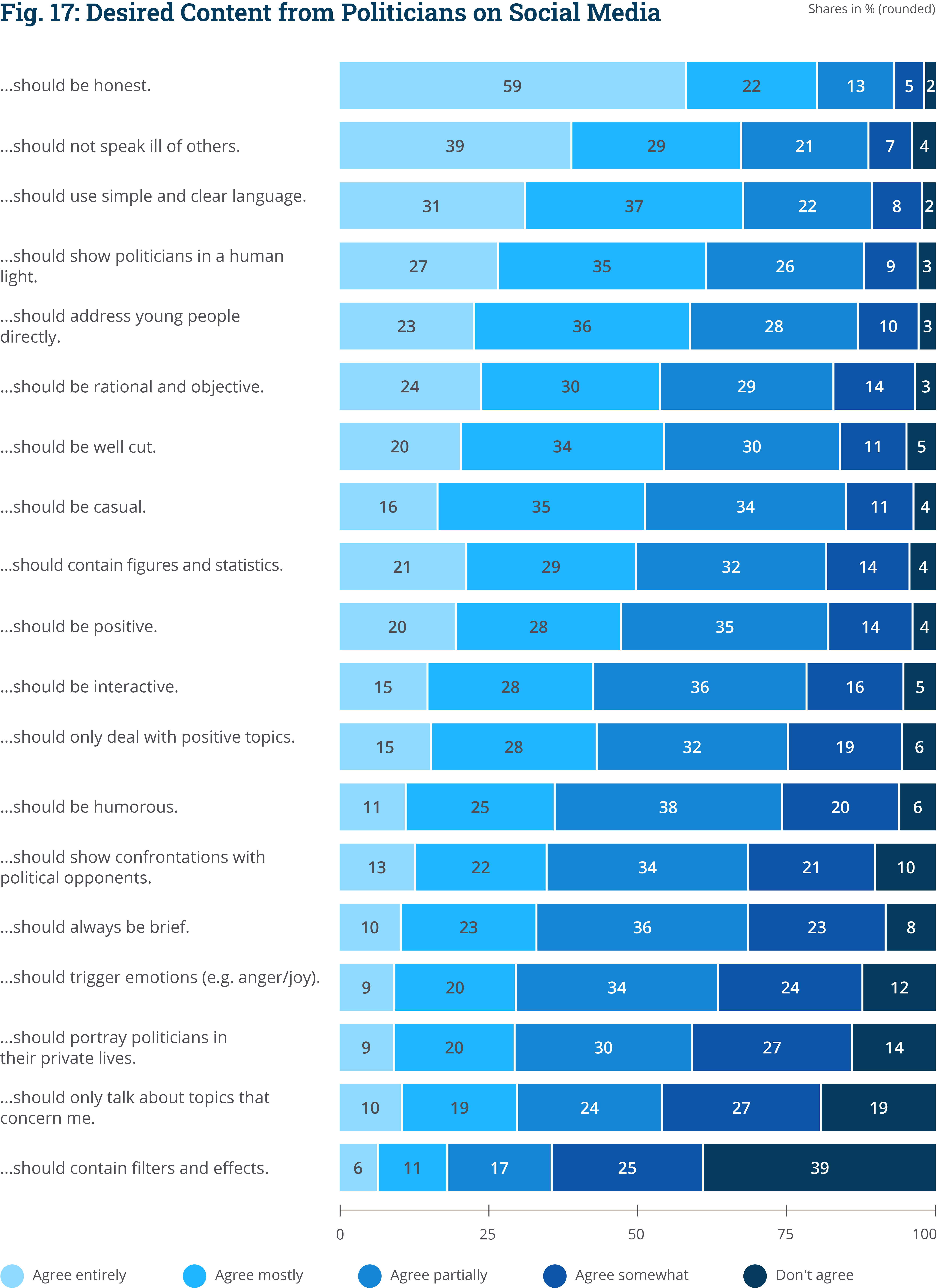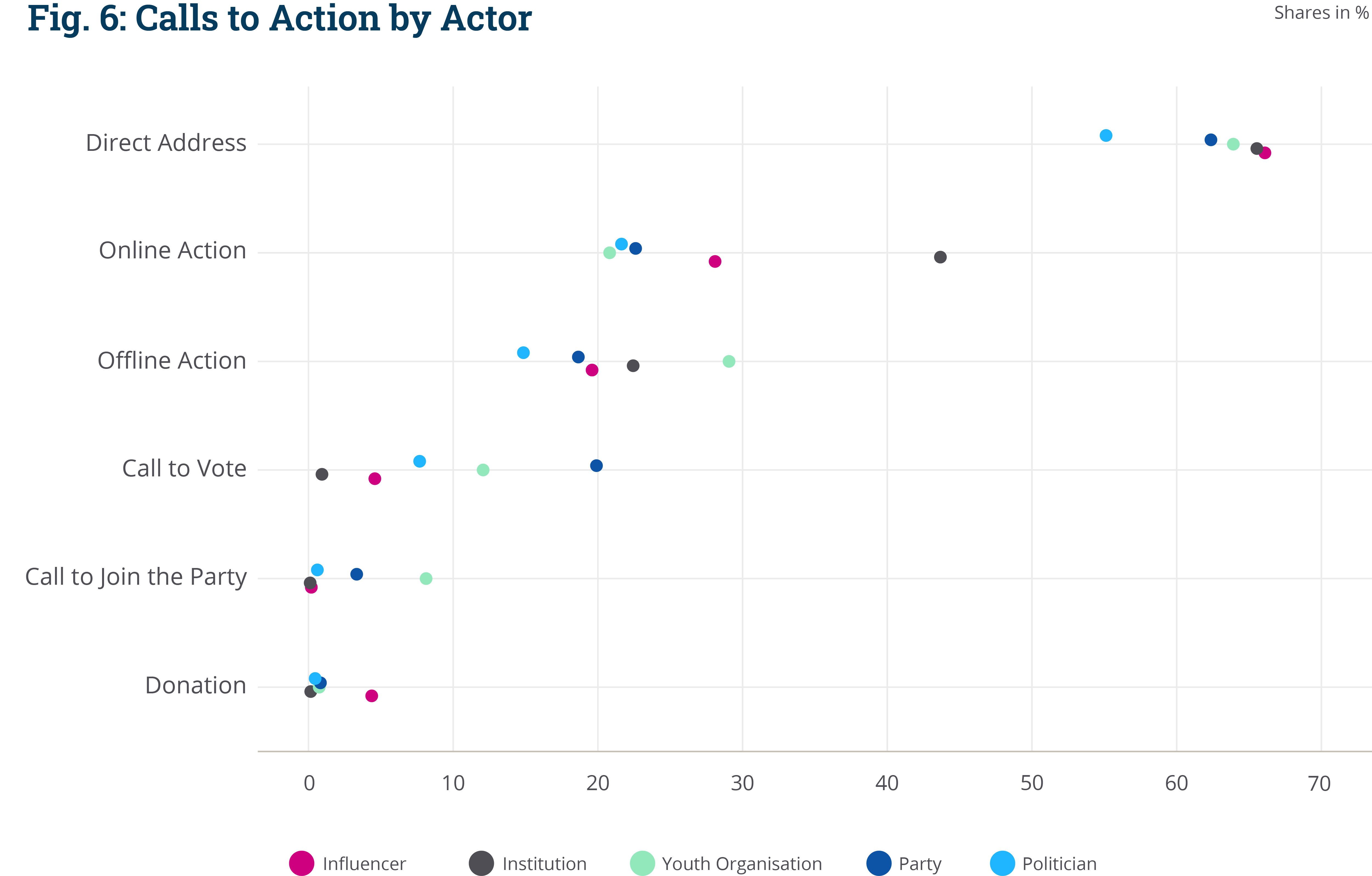 For political actors, the results show that today a presence on TikTok and Instagram is essential because both platforms are the central sources of political information for young people. At the same time, mere presence is not enough: it is imperative to take young peoples’ current reality seriously and to address it in political communication. Especially when it comes to the future, it should not sound abstract and detached from everyday life. Short video formats can enable genuine interaction and thus essential democratic discourse between politics and young people.