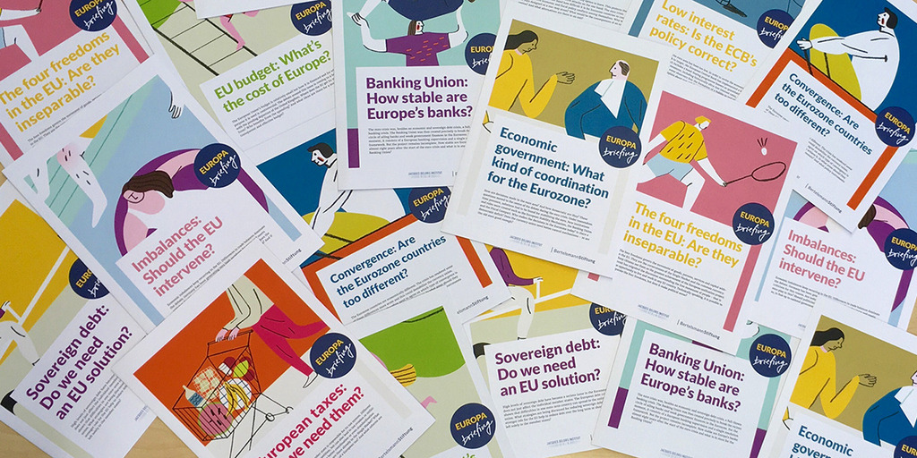 The debate is on: In the coming months, Europe’s leaders might take far-reaching decisions on the future of Europe and the euro. Discussions often get caught between very technical details and political polemics. This is where our Europa Briefings come into play. The ten-piece poster series explains key terms in the current debate on the future of Europe and the euro. We explain what the problem is, what possible scenarios there are to move ahead, and what policy-makers can do now to enable an informed dialogue.