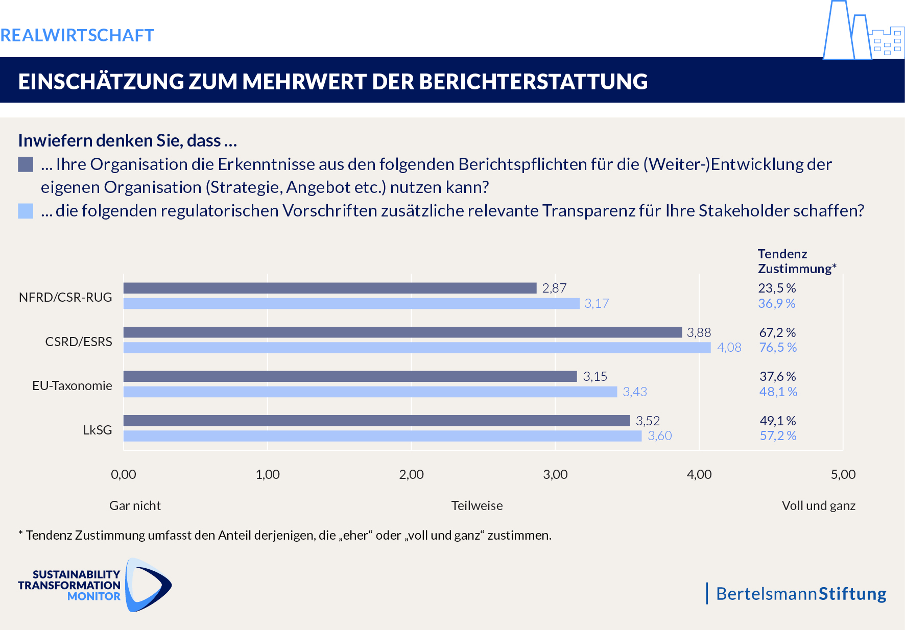 Denn zukünftige Arbeitnehmer:innen werden in der Realwirtschaft von gut der Hälfte der Befragten "eher als Treiber" wahrgenommen, 16 Prozent empfinden sie als starken Treiber. "Insbesondere in Zeiten des Fachkräftemangels und der gestiegenen Ansprüche von potenziellen Mitarbeitenden an die Nachhaltigkeit ihrer Arbeitgeber können es sich Unternehmen oft nicht leisten, das Thema zu ignorieren", kommentiert Laura Marie Edinger-Schons, Professorin für nachhaltiges Wirtschaften an der Universität Hamburg und Chief Sustainability Officer der Hochschule. "Der Wettbewerb um die besten jungen Köpfe ist also ein stärkerer direkter Treiber der Nachhaltigkeit in den Unternehmen als Klimaaktivismus auf der Straße."