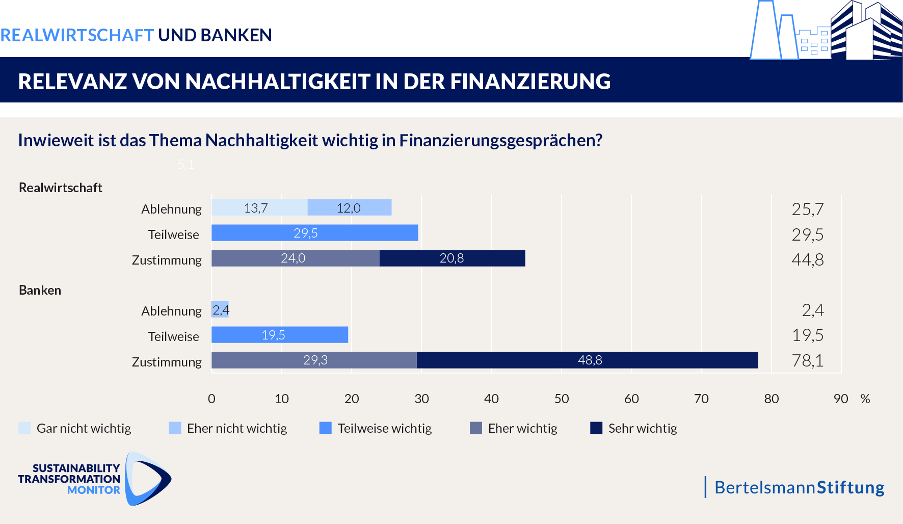"Der Klimawandel ist das größte Risiko für unser Wirtschafts- und Finanzsystem. Klimaschutz muss daher als zentrales Ziel bei Investitionsentscheidungen integriert werden. Für die Realwirtschaft ist dies eine strategische Notwendigkeit", erklärt Philipp Wesemann, Klimaschutz-Experte bei der Stiftung Mercator. Immerhin die Hälfte der befragten Banken berücksichtigten bei der Kreditvergabe und der Festlegung der Zinssätze Nachhaltigkeitskriterien. "Und die Unternehmen registrieren, dass der Einsatz für mehr Nachhaltigkeit ihre Arbeitgebermarke stärkt."