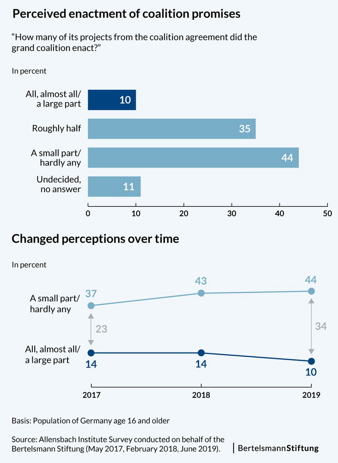 "The study's results point to a record-breaking midterm balance for the current grand coalition." explains Robert Vehrkamp, expert on democracy  at the Bertelsmann Stiftung and co-author of the study.