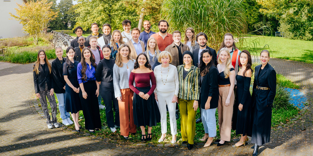 The final round of the NEUE STIMMEN International Singing Competition starts in Gütersloh today. The singers have gathered for an initial group photo. "You can immediately feel that music, as a universal language, connects people from different backgrounds and cultures. It doesn't matter from which part of the world these young talents have traveled to Gütersloh," says Liz Mohn (center). The competition's founder and chairwoman of the Liz Mohn Foundation welcomed the young talents upon their arrival in Gütersloh on Sunday afternoon.
