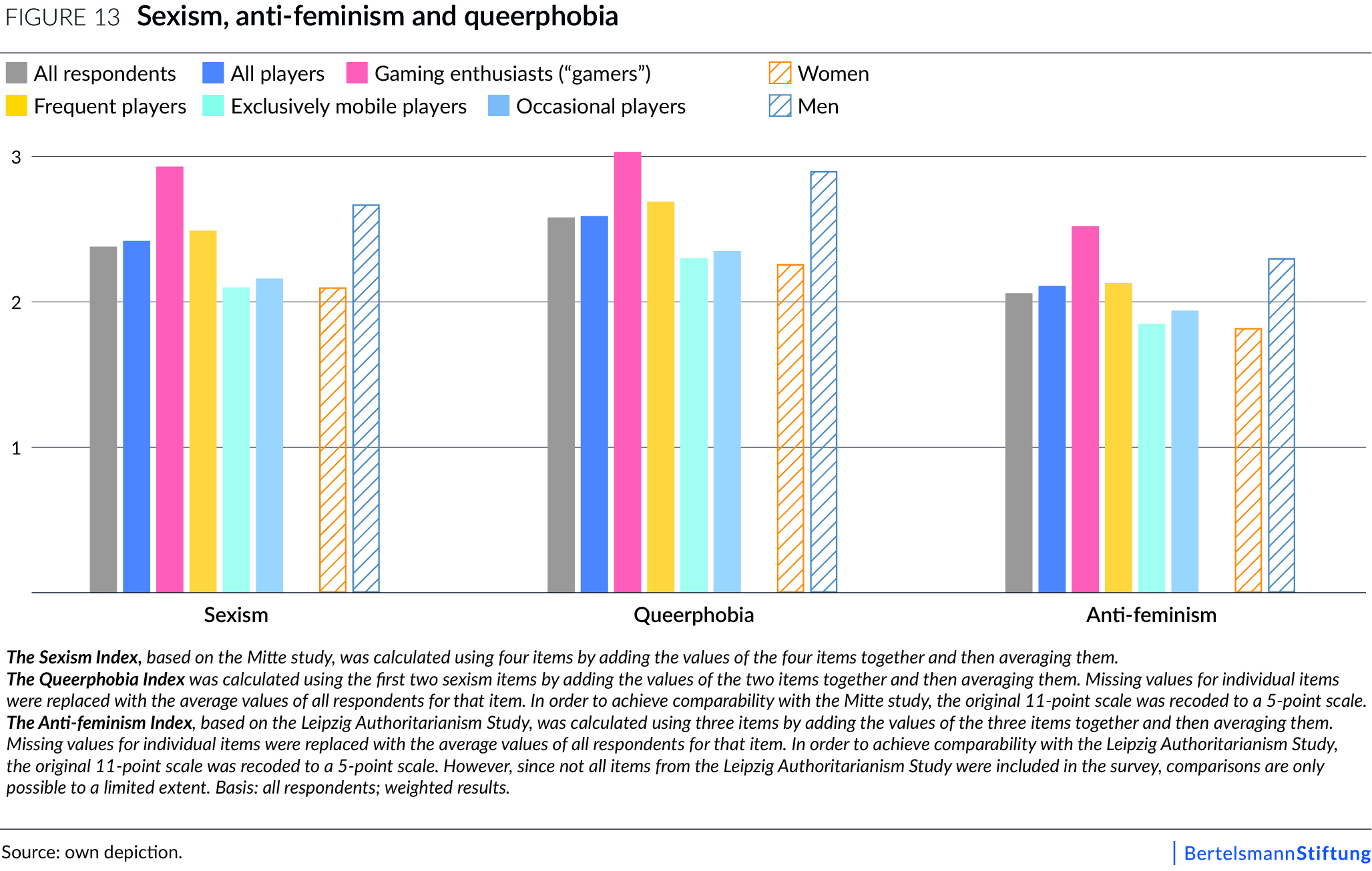 However, the study also highlights some problematic aspects. For example, it finds that the more players engage in social interaction online, the more frequently they report having been discriminated against or bullied. Another problematic finding is that 58 percent of the very young group of enthusiasts classify themselves as moderately or severely lonely. Last year, the Bertelsmann Stiftung demonstrated that young people are particularly affected by loneliness. It is also alarming that antisemitic, sexist and queerphobic attitudes are significantly more prevalent among “gaming enthusiasts” than among the average of all respondents. According to the Bertelsmann Stiftung, these mixed findings call for more research and comparisons with other online spaces.