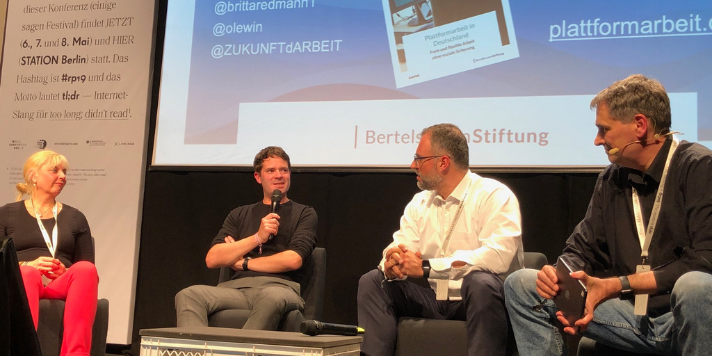 Die diesjährige re:publica (#rp19), Europas größte netzpolitische Konferenz, stand unter dem Motto tl;dr – Internet-Slang für „too long; didn’t read“. Damit hat sie es sich explizit zum Ziel gesetzt, inhaltlich in die Tiefe zu gehen und komplexe Dinge von verschiedenen Seiten zu betrachten und zu durchdenken. In diesem Sinne passte die Präsentation unserer Umfrageergebnisse hervorragend zum Konferenz-Motto: Unser Realitätscheck zum Status Quo der Plattformarbeit in Deutschland trägt dazu bei, dringend benötigte Empirie in die Debatten zur Plattformarbeit zu bringen und auf dieser Basis an Lösungsvorschlägen zu arbeiten.