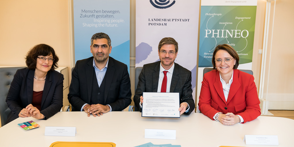 Farhad Dilmaghani (PHINEO) und Claudia Walther (Bertelsmann Stiftung) erläuterten, dass das Projekt Weltoffene Kommune von dem Projekt Welcoming Cities in den USA, getragen von Welcoming America, inspiriert wurde. Die von der Stiftung Mercator geförderte Pilotphase ist inzwischen abgeschlossen. Nun startet das von der Bundesbeauftragten für Migration, Flüchtlinge und Integration geförderte Modellprojekt, in dessen Rahmen etwa 40 Kommunen einen Selbstcheck durchführen können. Drei Säulen umfasst das Projekt: 1. Den Selbstcheck, 2. Dialogformarte und 3. Unterstützungsangebote. Interessierte Kommunen können sich gerne hier bewerben.